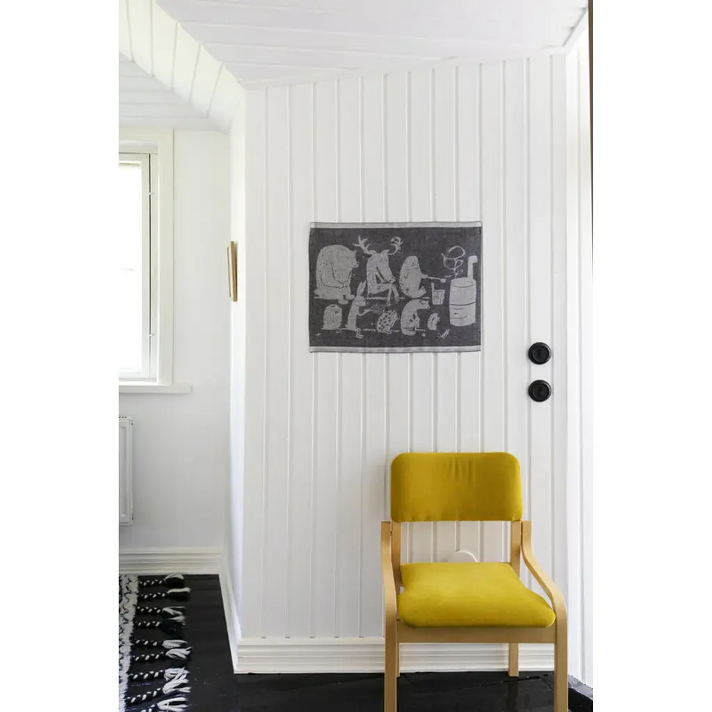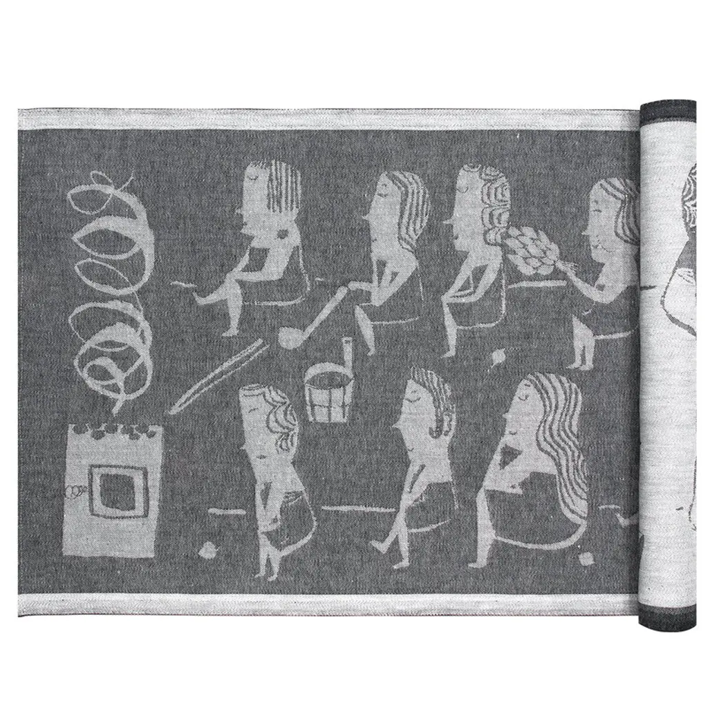 The Eläinten Sauna seat cover by Lapuan Kankurit is adorned with Matti Pikkujämsä’s drawing depicting a group of Finnish animals enjoying a traditional sauna – Eläinten Sauna is Finnish for ”animals' sauna”. Made of a blend of European linen and organic cotton, the sauna seat cover has a feel of quality and skilled crafting traditions. The Eläinten Sauna seat cover has been woven in Finland at the own weaving mill of Lapuan Kankurit.