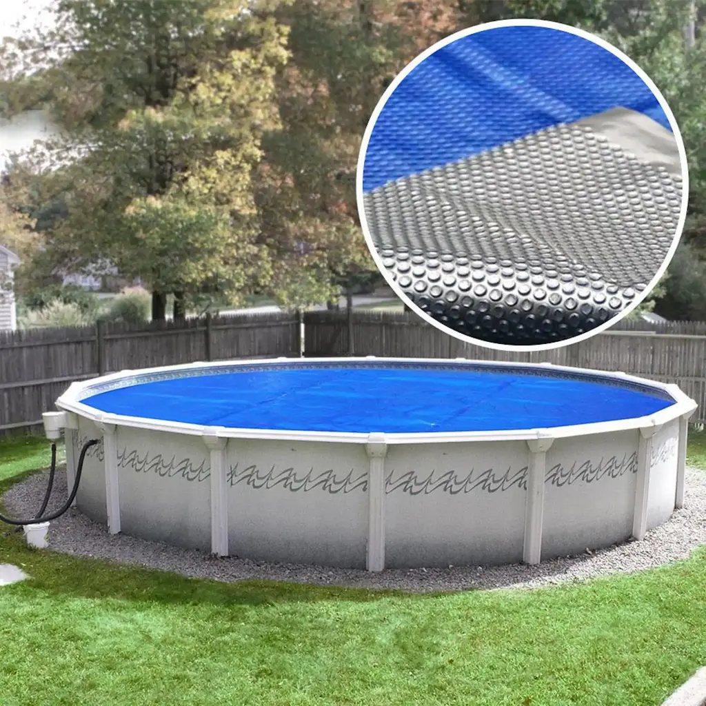 Protect your pool and save on heating costs with our Extra Heavy-Duty Space Age Solar Cover. Made of high-quality plastic and featuring an aluminum underside, this cover retains heat and reduces evaporation for a warmer, cleaner pool. With its superior UV resistance, it's built to last for years of use.Features: