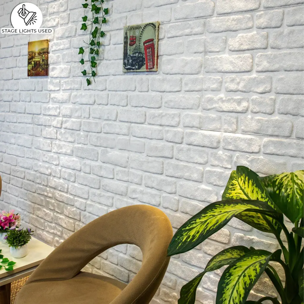 Faux Brick Wall 3D Wall Panels, White, Set Of 10, Covers 53 Sq Ft