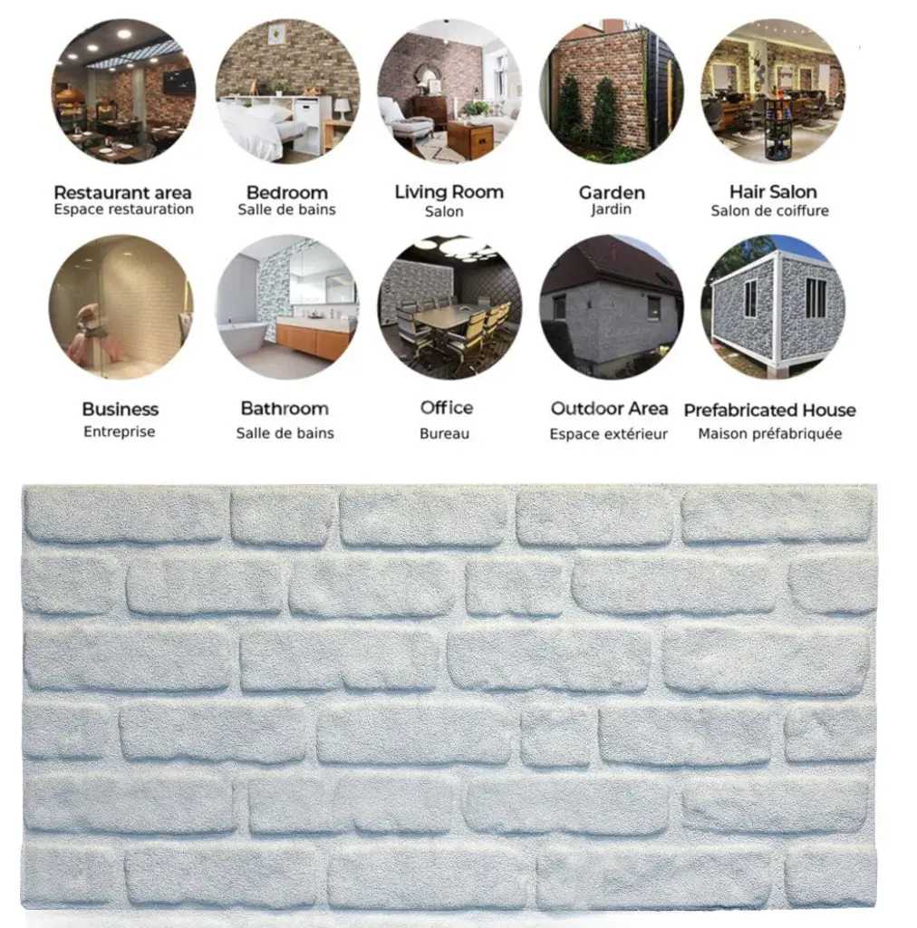 You can use our panels for residential and commercial decoration. The application landscape includes homes, cafes, restaurants, hotels, exhibition stands, offices, shops, and showcase decorations. The Dundee Deco Styrofoam Wall Panels can be installed without professional help. You can do it yourself. The structure and characteristics of our panels add value to any construction project by preventing moisture and providing thermal insulation. The Dundee Deco panels do not deform over time, are water-resistant and impact-resistant, non-flammable, and are 100% environmentally friendly. The products can be used for Interior and Exterior applications. For exterior applications, please use water-based varnish.Features:• REAL 3D Brick Stone Look - Made of high-quality EPS material, this wall panel provides a REALISTIC FEEL at a fraction of the cost.• PERFECT SIZE AND DESIGN - Dundee Deco panels are 39.4 in (100 cm) in length and 19.7 in (50 cm) in height with thicknesses of 0.79in (2 cm).• USE IT ANYWHERE - This 3D Wall Panel is designed for INDOOR and OUTDOOR use and can easily be applied to ANY SURFACE.• DIY FRIENDLY - You can apply your walls and ceilings with Dundee Deco Styrofoam 3D wall panels without professional help. You can simply apply it with construction glue, no other special tools are needed• EXCELLENT HEAT AND SOUND INSULATION - Dundee Deco 3D wall panel facing bricks also offer a variety of decorative combinations and fit into almost any ambiance.• Thanks to it''s surface structure, you do not feel the artificial effect of applying Dundee Deco wall tiles. Whether brick or stone look, the cladding of the wall panels is always elegant and durable.• The decorative 3D Wall Panels are available in a Set of 10 and covers 53 square feet per pack. One board weighs 2.6 lbs (1.2 Kg).• The panels can be used in moist environment because of insulation properties of their material. It provides thermal and moisture insulation and does not change shape over time.• The styrofoam wall panels are suitable for homes, businesses, cafes, hotels, offices, exhibition stands, restaurants, and decorating showcases.