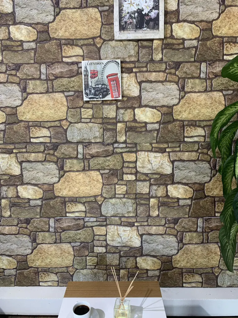 Faux Stone 3D Wall Panels, Gold Brown, Set Of 10, Covers 54 Sq Ft
