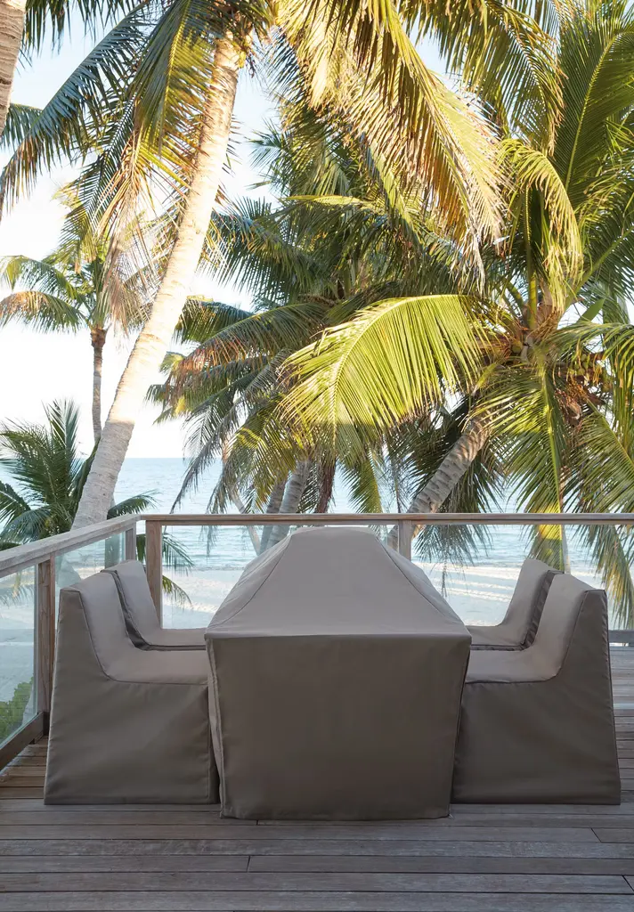 Protect your Finn Collection in the off-season with our tailored furniture covers. Made to ward off the elements year-round, these covers are constructed of tough Weathermax, a 100% solution-dyed all-weather polyester designed especially for outdoor use. They're breathable; resistant to water, mildew, abrasion and sun exposure; and easy to clean. Backed by a three-year limited warranty. Made in Mexico.