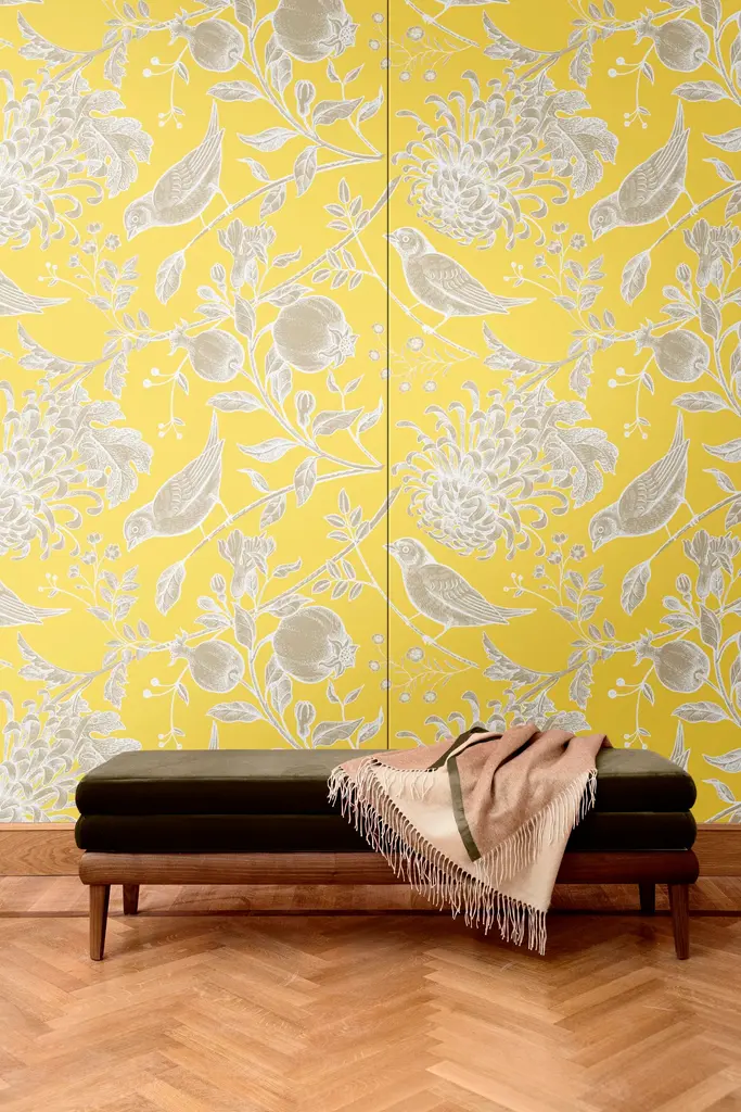 Flowers And Birds 2 Fabric Wall Covering By Chiara Mennini For Midsummer-Milano