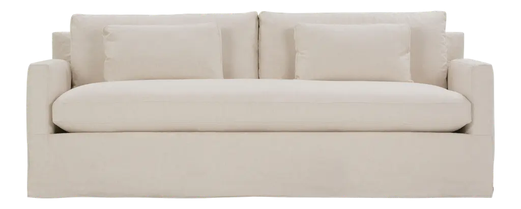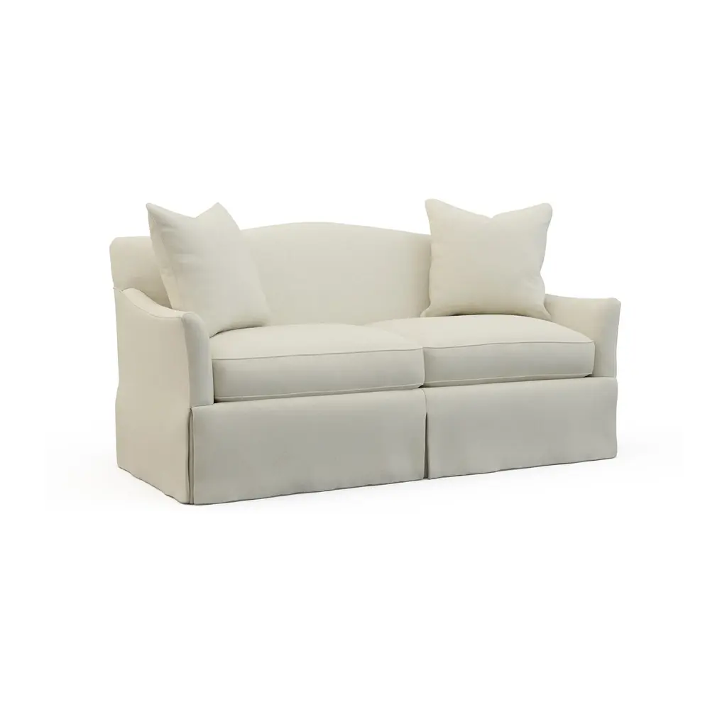 Introducing the Jordan Loveseat Slipcover the perfect blend of practicality and style. Crafted for year-round versatility, this slipcover collection offers a relaxed fit that's both comfortable and low-maintenance. Designed with a straight skirt and four ties at the corners, these slipcovers are tailored for a snug, tidy look that will elevate your loveseat's appearance. They're washable, ensuring that your furniture stays crisp and fresh with minimal effort. Available in neutral colors, these slipcovers effortlessly complement both classic and contemporary styles, soft palettes, and weathered wood tones. Upgrade your loveseat with the Jordan Slipcover and enjoy the convenience of a slipcover without compromising on aesthetics.This is a Custom Model. Call us for Quotes