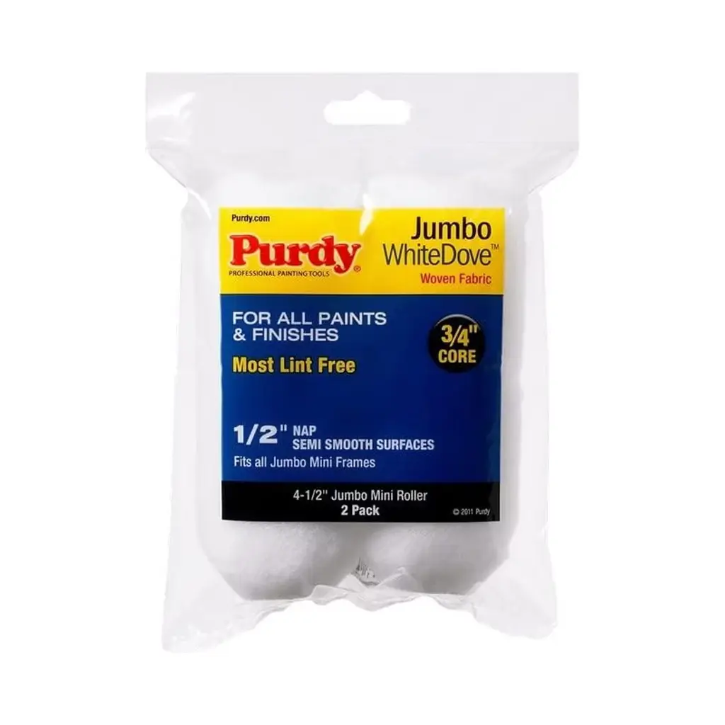 Genuine Purdy replacement part. The Purdy White Dove mini roller cover works well with all paints and exterior stains, especially where a smooth, lint free finish is desired. This mini roller cover is the most lint free roller cover and are double vacuumed for a smooth uniform finish every time. Fits all Purdy Jumbo Mini Roller Frames. High density woven roller cover for a high quality finish.