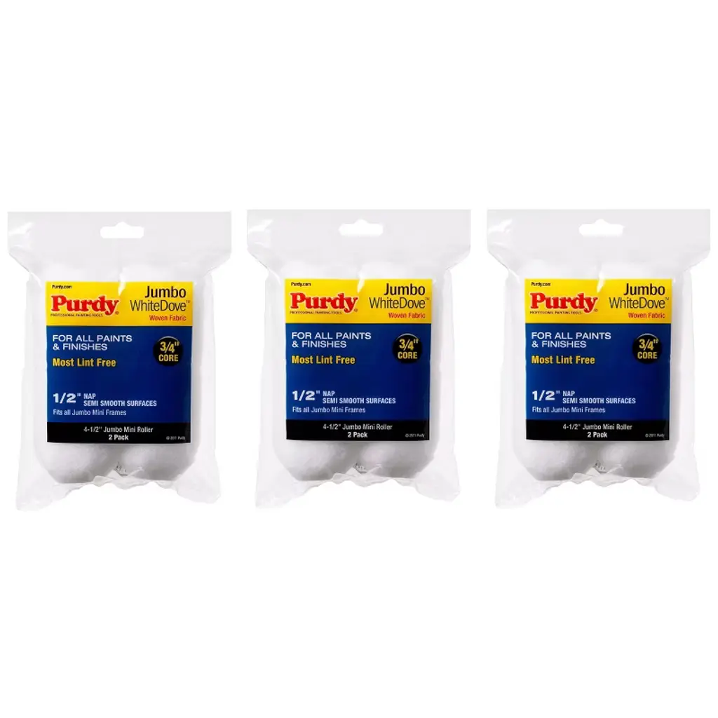 Genuine Purdy 3 Sets Of White Dove Jumbo Mini 4-1/2" X 1/2" Nap 2 Pack Roller Covers 140624013-3pk