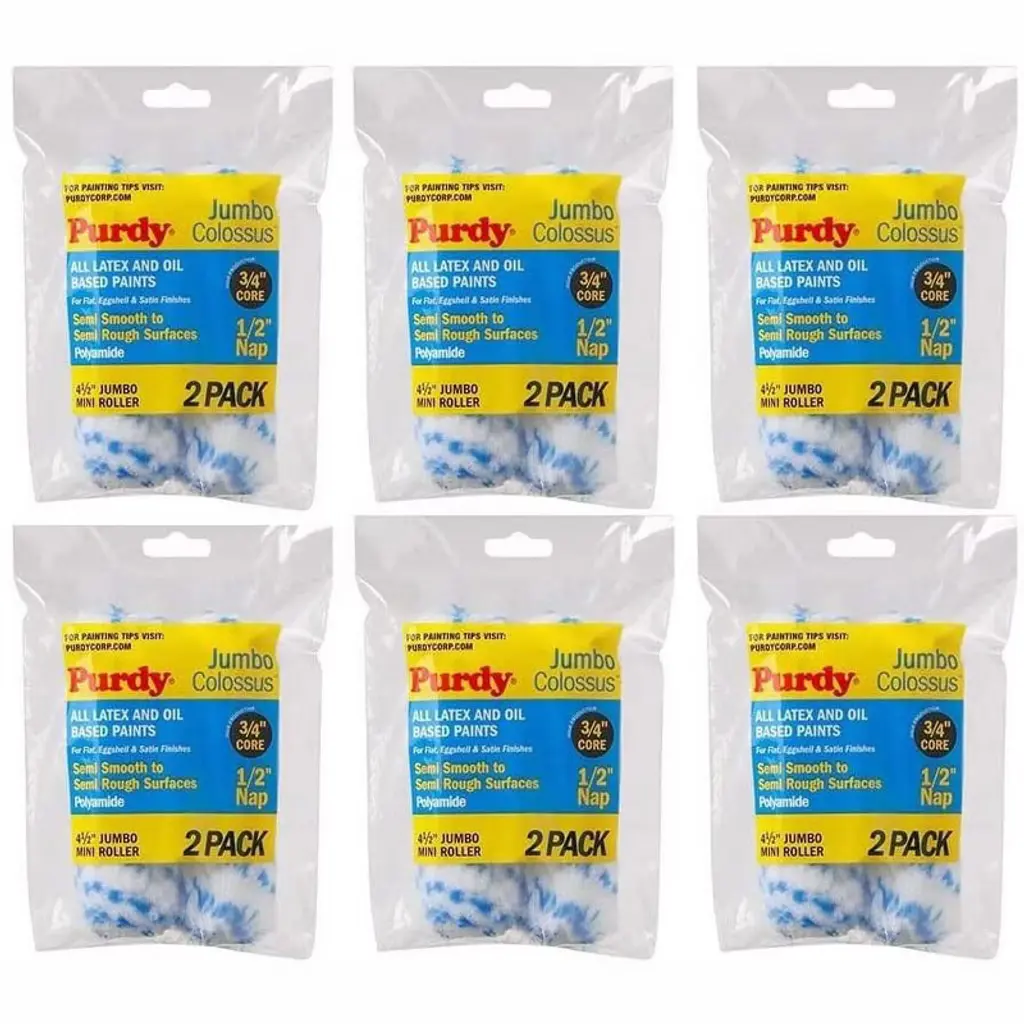 Genuine Purdy 6 Sets Of Colossus Jumbo Mini 4-1/2" X 1/2" Nap 2 Pack Roller Covers 140624033-6pk
