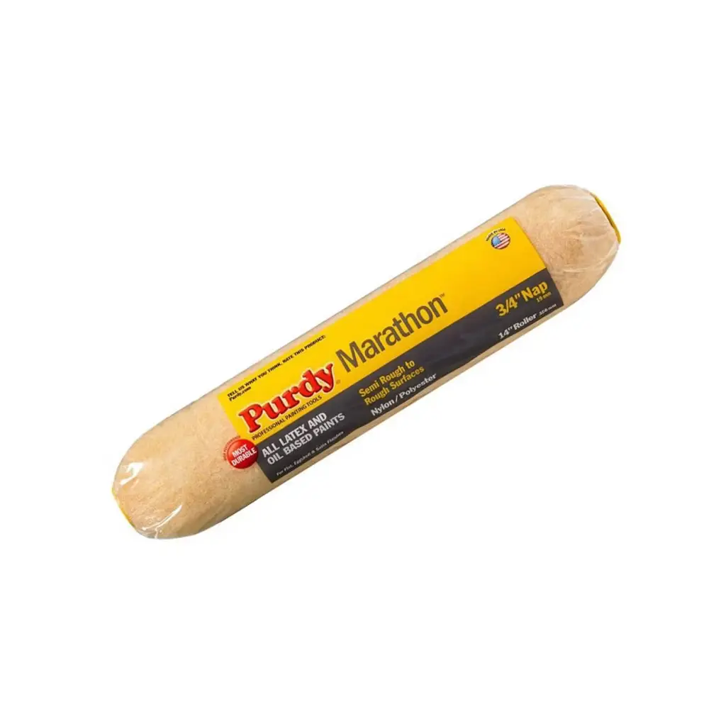 Genuine Purdy replacement part. The Purdy Marathon paint roller is our most durable and productive knitted cover, made with a blend of nylon and polyester. Designed to hold more paint so you can paint farther per dip, this applicator is best for semi-smooth to semi-rough surfaces. Choose latex and oil-based paints and primers in flat, eggshell and satin sheens for the best results with this high-quality roller cover. Ideal for drywall, concrete, masonry and decks.