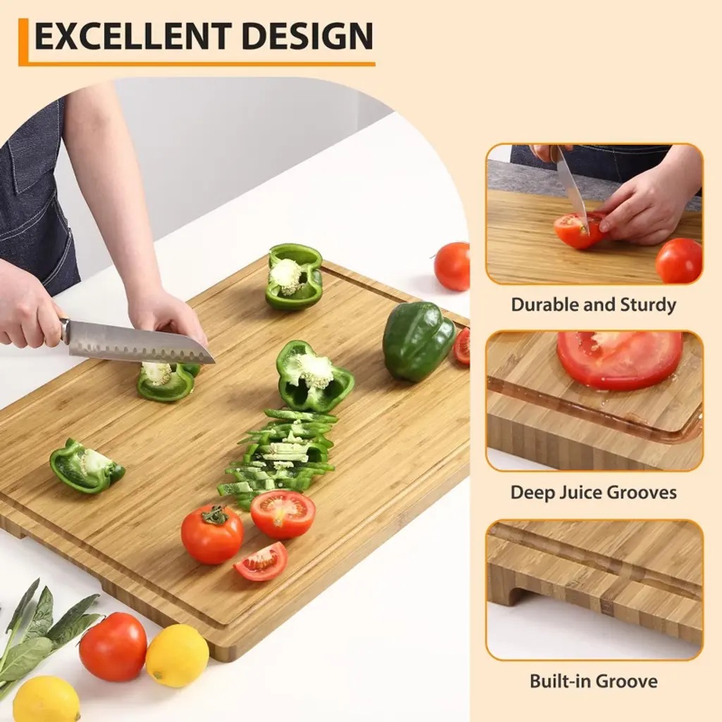 Gustowave 24x18 Inch Extra Large Cutting Board For Kitchen, Bamboo Wood Butcher Block For Meat, Stove Top Cover Noodle Board Over Sink Boar