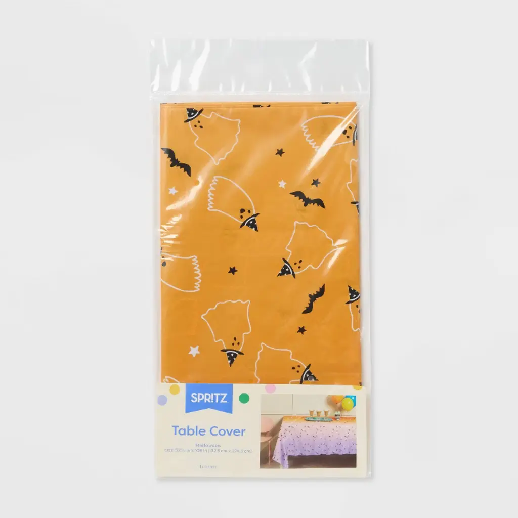 Add a pop of Halloween fun to your table with the Halloween Ghost Witch Ombre Table Cover Orange/Purple - Spritz™. With its bold orange-to-purple ombre fade and playful ghost and witch print, it’s a simple way to get into the spooky spirit. Whether you're hosting a party or decorating for trick-or-treaters, this cover makes cleanup quick and easy while setting a festive vibe.Spritz™: Pops of joy that make the moment™