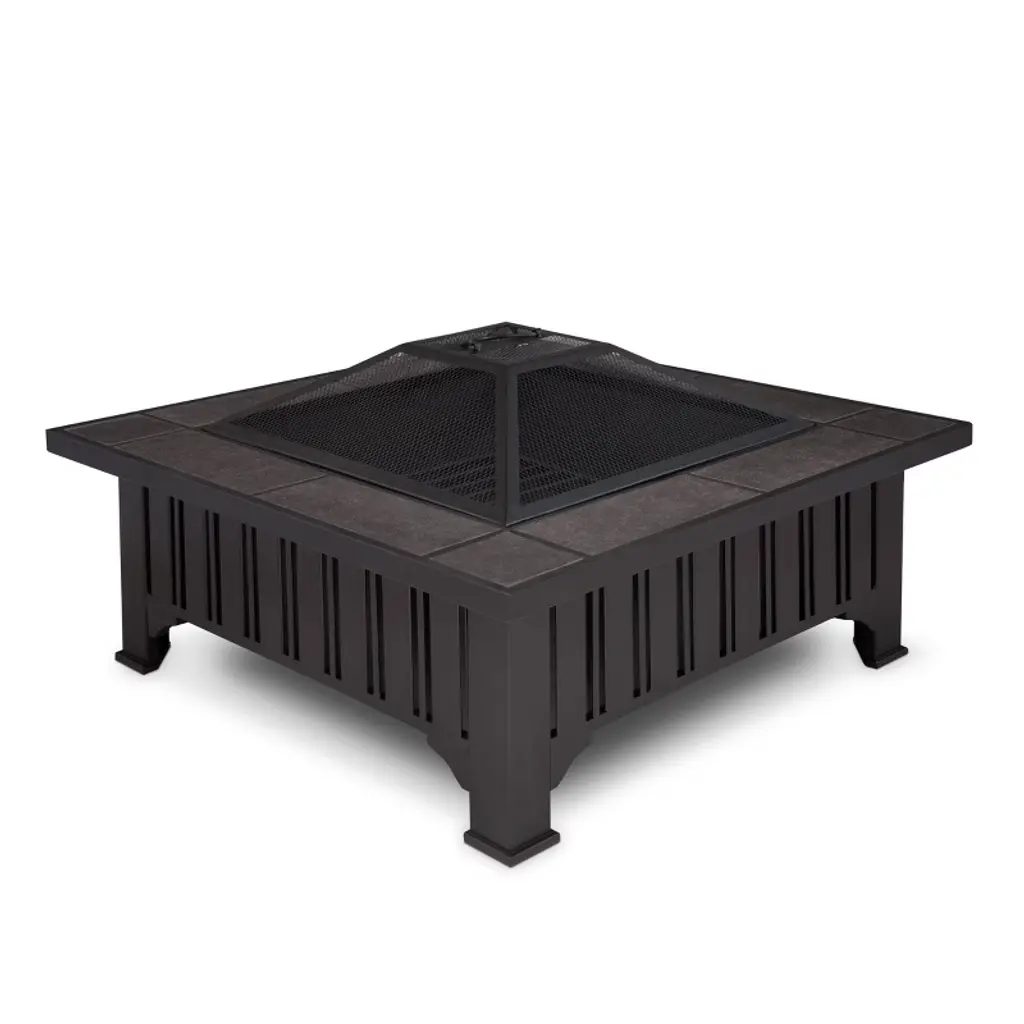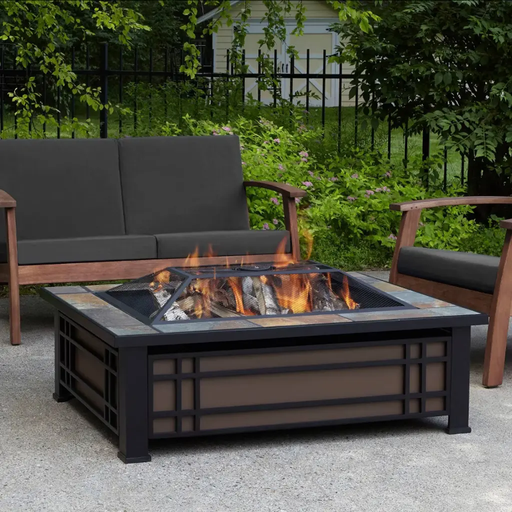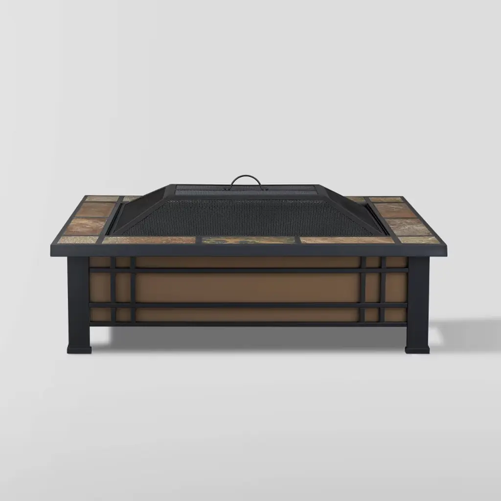 Hamilton Rectangle Wood Burning Fire Pit Brown - Real Flame: Slate Top, Mission Style Frame, Spark Screen & Cover