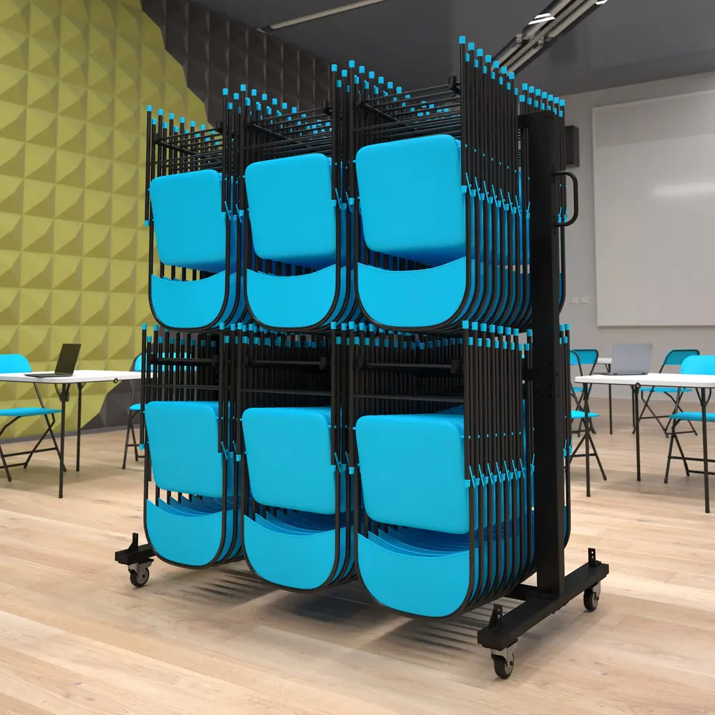 Hawkins Heavy Duty Folding Table And Chairs Mobile Cart-Locking Wheels, Outdoor Cover, 84 Folding Chairs Or 42 Chairs And 12 Tables Capacity