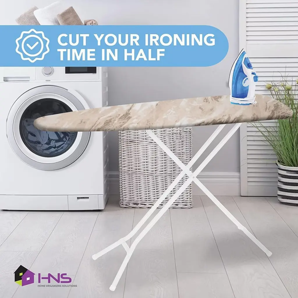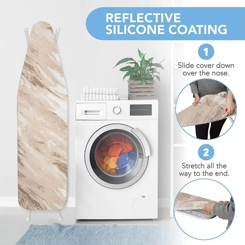 Hold N' Storage Ironing Board Cover And Pad - 15" X 54" - Large Fits All Standard Sizes - Heat Reflective Iron Pad For Table Top - Beige Marble