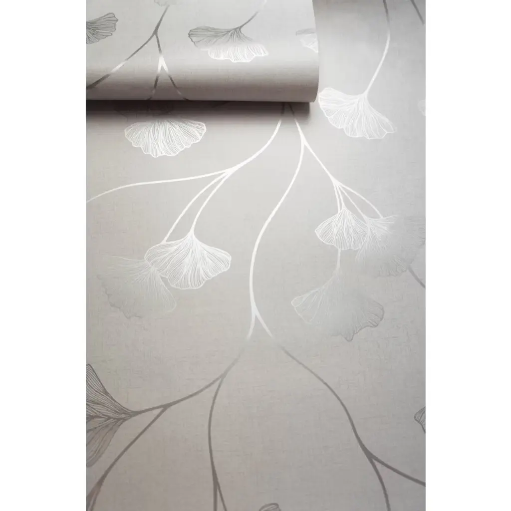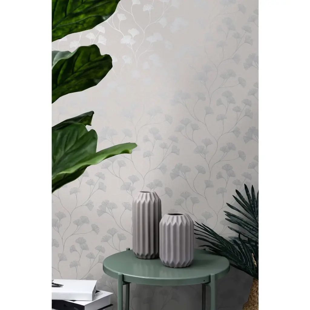 Holden Glistening Ginkgo Silver Wallpaper: Mid-century Modern Floral Design, Non-pasted Paper, Smooth Metallic Finish, 56 Sq Ft Coverage
