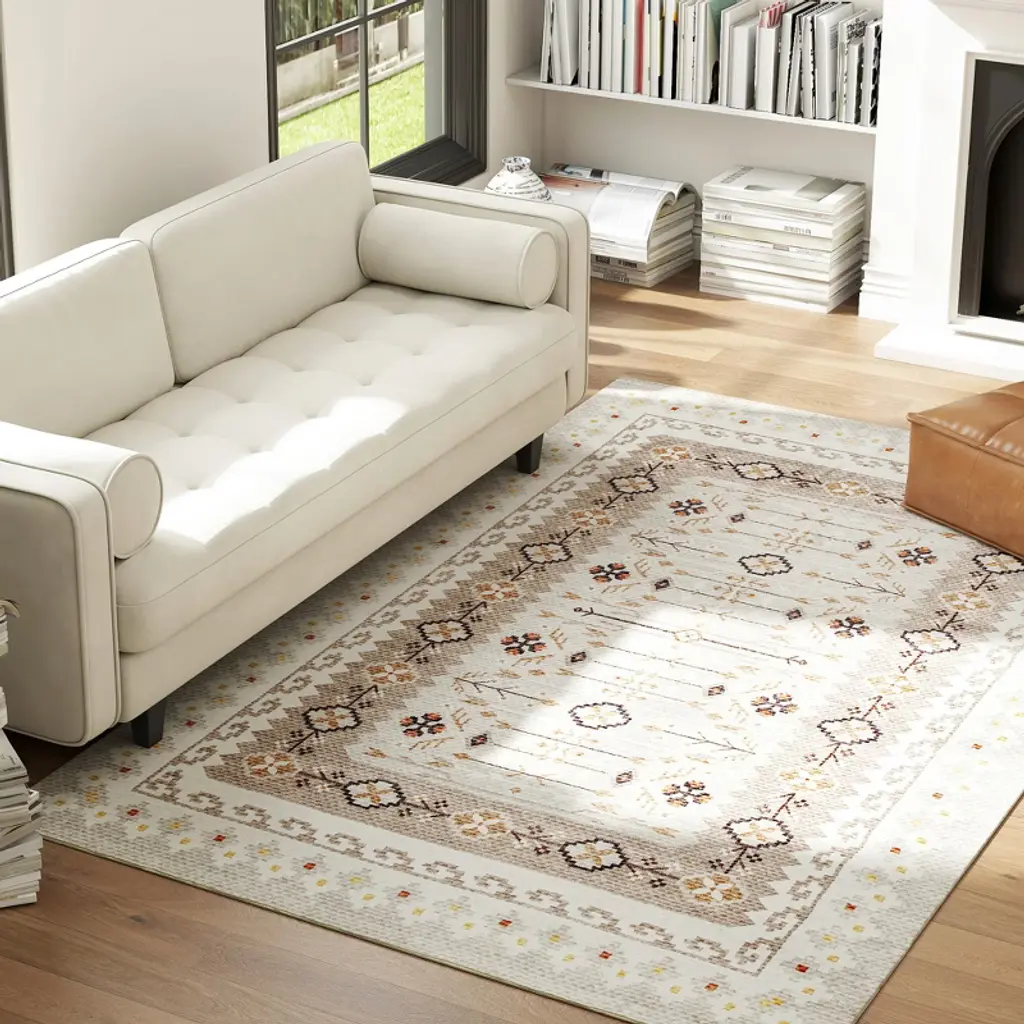 Step into style and comfort with the HOMCOM area rug, featuring a blend of geometric shapes and floral accents in bohemian style that effortlessly enhance any space, from living rooms to studies. Crafted from soft, plush flannel, this bedroom rug offers easy cleaning options. Plus, a 100% TPR anti-slip backing ensures your setup is chic and safe. Suitable for any room needing a touch of elegance!