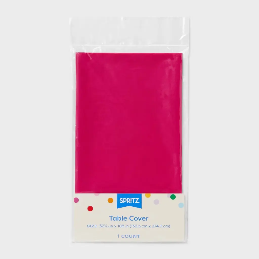 Infuse your party with a pop of color using the Hot Pink Rectangular Table Cover from Spritz™. This table cover adds a bold and energetic flair to your entertaining space. It provides practical protection against spills and stains and ensures easy setup. With generous dimensions, the hot pink rectangular table cover from Spritz™ is the ideal choice for any occasion, from birthday bashes to festive gatherings.Spritz™: Pops of joy that make the moment™
