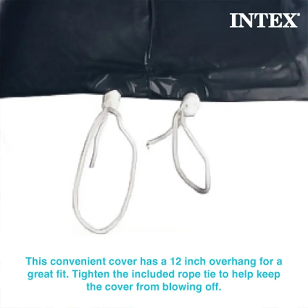 Spend more time swimming in your pool this summer and less time cleaning it with the Intex 10-Foot Easy-Set Pool Cover. This above-ground pool cover helps keep your pool free of dirt, insects, and debris when not in use. Constructed of high-quality, durable 7-gauge, UV-resistant PVC vinyl, this pool cover features drain holes to prevent water from accumulating on top. Having your pool covered also helps to prevent evaporation up to 95 percent. You can also save up to 50 percent on pool chemicals when using this cover. This cover is also ideal as a thermal blanket for heated pools. With a 12-inch overhang, you can get a secure connection to the top of the pool with the included rope. Don't spend valuable summer hours skimming leaves, bugs, and dirt out of your pool. Instead, enjoy those precious hours swimming, splashing, and relaxing with the Intex 10-Foot Easy Set Pool Cover. Fitted for a 10-foot Intex Easy Set swimming pool Retains heat to keep water at a consistent temperature Drain holes prevent water accumulation Floats on the surface of the water and 12-inch overhang and included rope tie helps it stay put Reduces water evaporation by 95 percent May save you up to 50 percent on pool chemical usage when covered Keeps leaves and debris from entering the pool which reduces maintenance time Also ideal as a thermal blanket for heated pools Easy and economical to use Reusable carry bag for easy storage Cover material: PVC Color: Blue Dimensions (L x W): 10 x 10 feet Weight: 5.14 pounds Manufacturer warranty: 30-day warranty