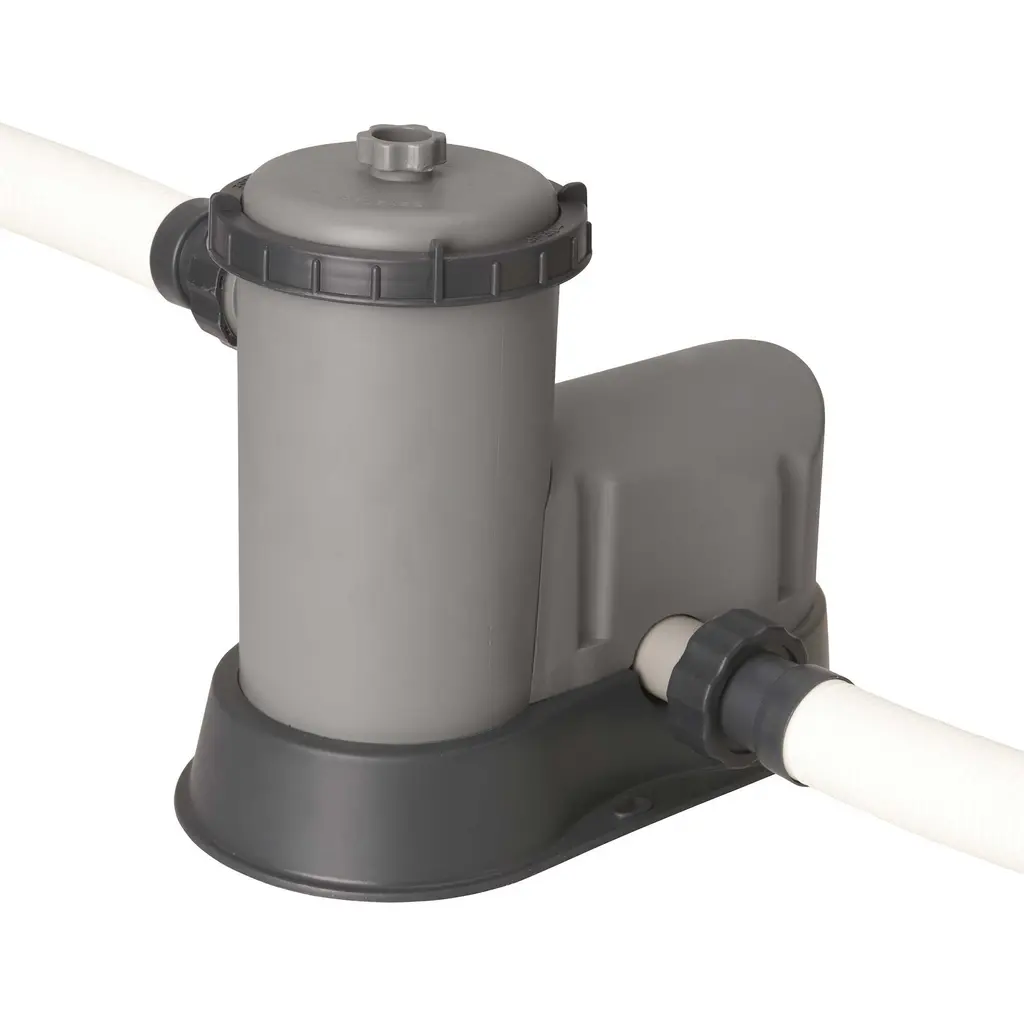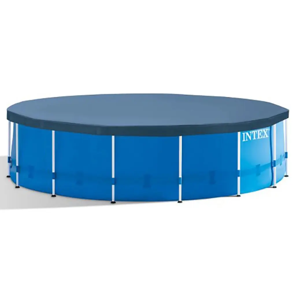 28241EH Intex 15ft x 48in Metal Frame Pool Set. Beat the heat all summer with the Intex 15ft X 48in Metal Frame Pool. Engineered for strength, this pool is supported by strong, durable steel frames which are powder coated for rust resistance and beauty. Triple strong, SUPER-TOUGH laminated sidewalls are reinforced with an all-around band to keep frame legs firmly in place. This pool will make your backyard the place to be all summer as your family can relax and play. Connect the Krystal Clear Cartridge Filter pump to enjoy clean, refreshing water. Equipped with the Ground Fault Circuit Interrupter, which is an added safety feature that shuts off the pump if electrical current is exposed to water. Ready for water in 45 minutes, - follow the instructions for easy set up, and enjoy the fun! This pool is supported by strong and durable steel frames that are engineered to last. The new innovative T-Joint design makes assembly quick and easy so you can have more time to enjoy the pool. Hydro Aeration Technology is incorporated into the filter pump for improved circulation and filtration, improved water clarity and increased negative ions at the water surface. Constructed with puncture-resistant 3-ply material. • Innovative new T-Joint - easy to assemble, no tools required. • Ready for water in approximately 45 minutes. • Approximate set-up size 15ft x 48in. • Water depth: 42in. • Water capacity 4,440 gal (90%). • Suitable for Age 6+. POOL SET INCLUDES: pool, 1,000 gal cartridge filter pump, pool ladder, ground cloth and pool cover. Warning: Ensure active adult supervision at all times. Do not leave children unsupervised in or around the pool. Always remove ladder and toys from pool when not in use. No diving or jumping. Take a family vacation in your own backyard with the Intex Metal Frame Pool. Suitable for ages 6+. SIZE: Approximate set-up size 15ft x 48in. Water depth: 42in. Water capacity 4,440 gal (90 SUPERIOR TECHNOLOGY: Hydro Aeration Technology provides improved circulation and filtration, improved water clarity, and increased negative ions at the water surface. EASY SETUP: Innovative new T-Joint - easy to assemble, no tools required. Ready for water in approximately 45 minutes. POOL SET: Includes 1,000 gal Krystal Clear cartridge filter pump, pool ladder, ground cloth and pool cover.
