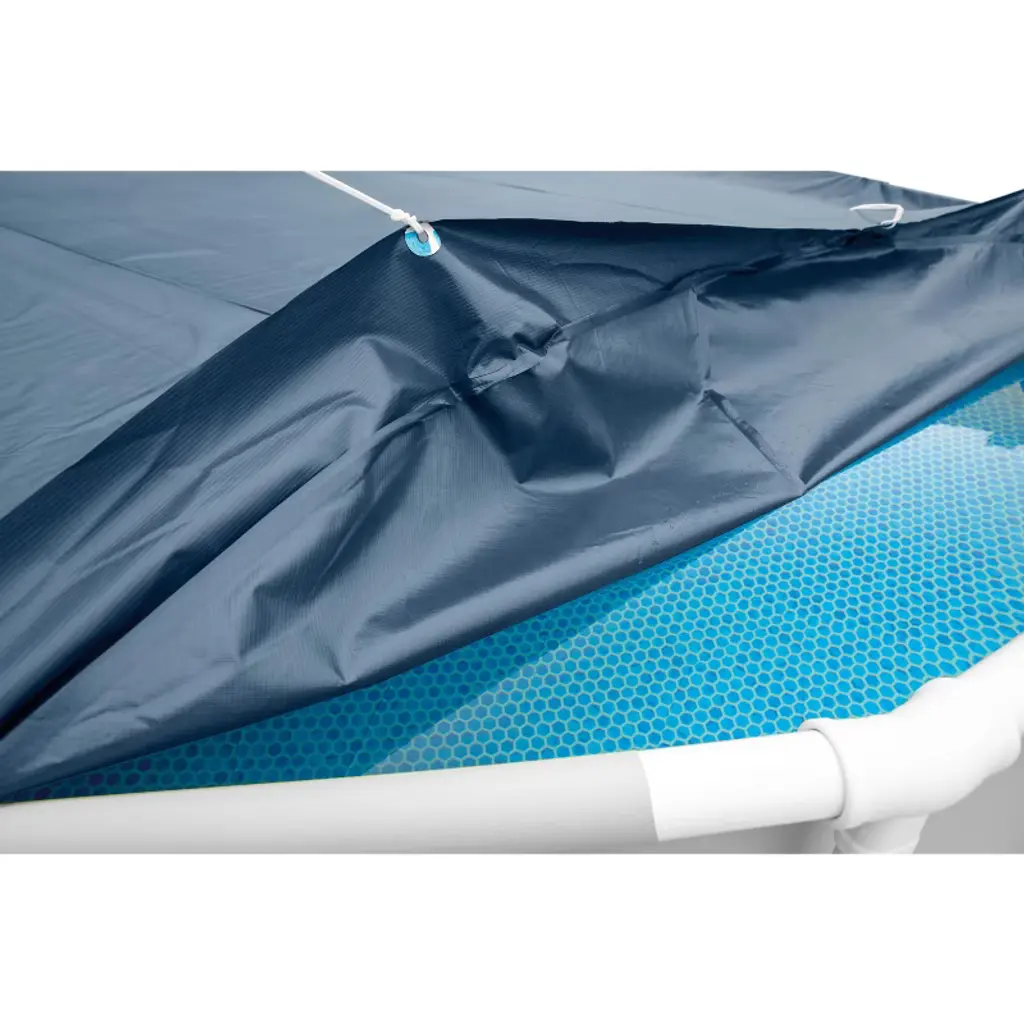 Using a pool winter cover is crucial for maintaining water quality and protecting your pool during the winter months. A winter cover is used to cover the pool when not in use, and prevents dirt, leaves and dirt from entering the water. This reduces the time and effort required to clean the pool in spring when you are ready to get it back up and running. You can even add an air cushion for tarps to promote water flow. This cover has an 8 inch overhang for a snug fit. Just tighten the rope tie to help keep the cover from blowing off. Fits: 16ft-diameter Metal Frame Pools. Includes: UV-resistant polyethylene material, a convenient rope tie, and drain holes to prevent water accumulation. Dimensions: 16' D x 8" H