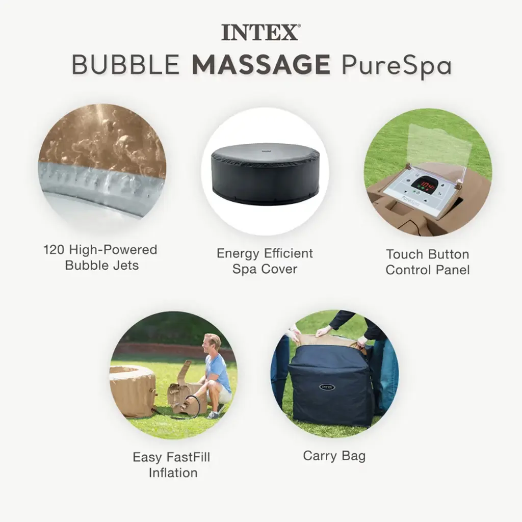 Intex 28425ep Purespa Bubble Massage Spa Set: Includes Energy Efficient Spa Cover – 120 Bubble Jets – 4 Person Capacity – 77" X 28"