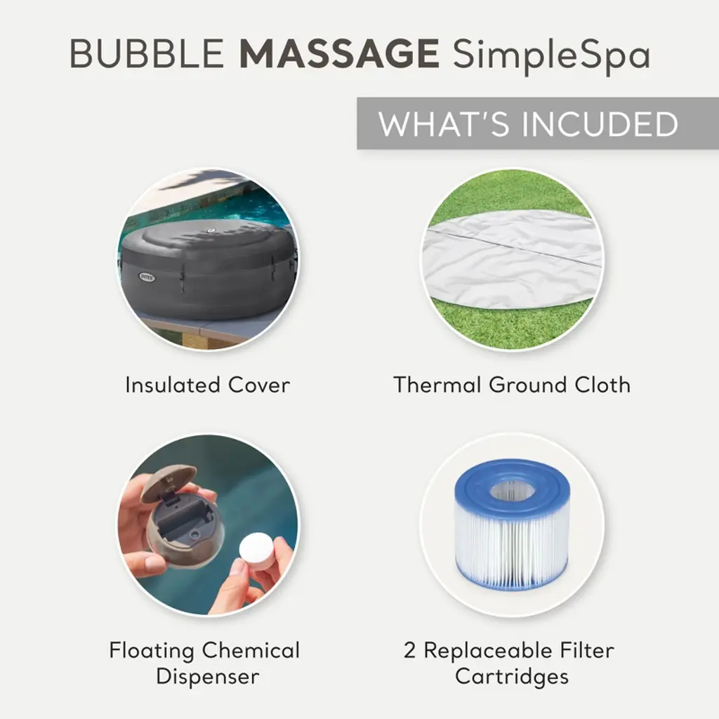 Intex 28489 Simplespa Inflatable Bubble Massage Spa: Includes Energy Efficient Cover – Built-in Quickfill Inflation – 6 Person Capacity – 85" X 26"