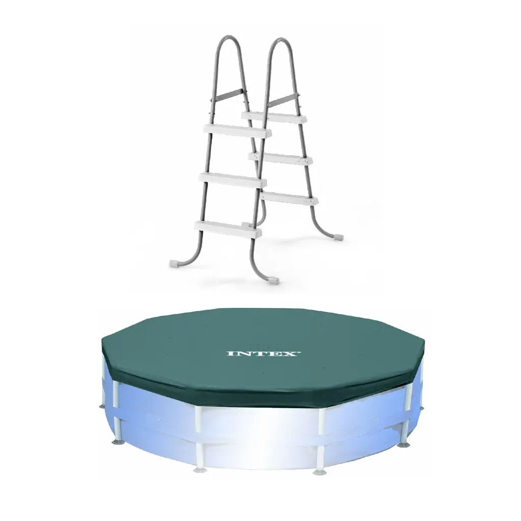 Intex Steel Frame Pool Ladder For 42” Wall Height Pools And 10’ Round Pool Cover - 17.75 - Silver - 17.75