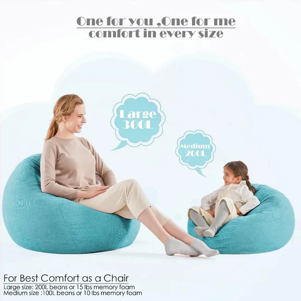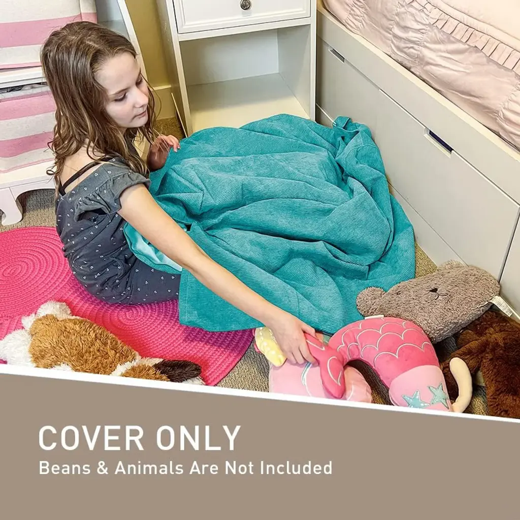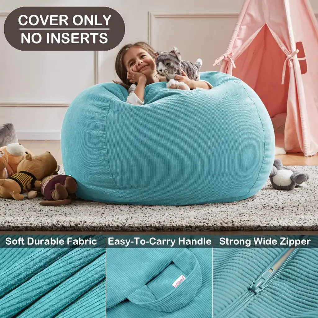 Itopfox Premium Corduroy Bean Bag Chair Cover - Soft, Washable, And Durable Stuffed Animal Storage Solution For Adults And Kids In Cyan