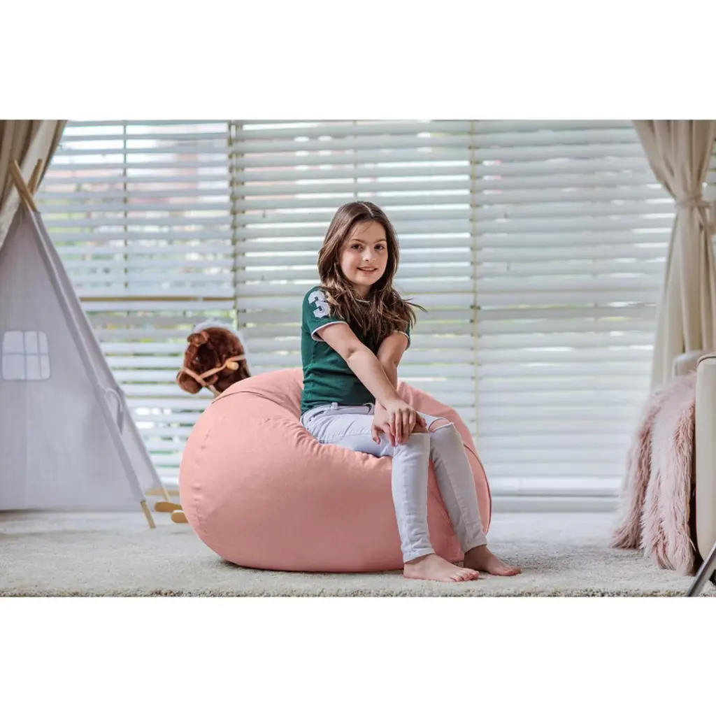 Itopfox Stuffed Animal Storage Bean Bag Chair Cover For Kids | Stuffable Zipper Beanbag For Organizing Plush Toys In Premium Cotton Canvas Solid Pink