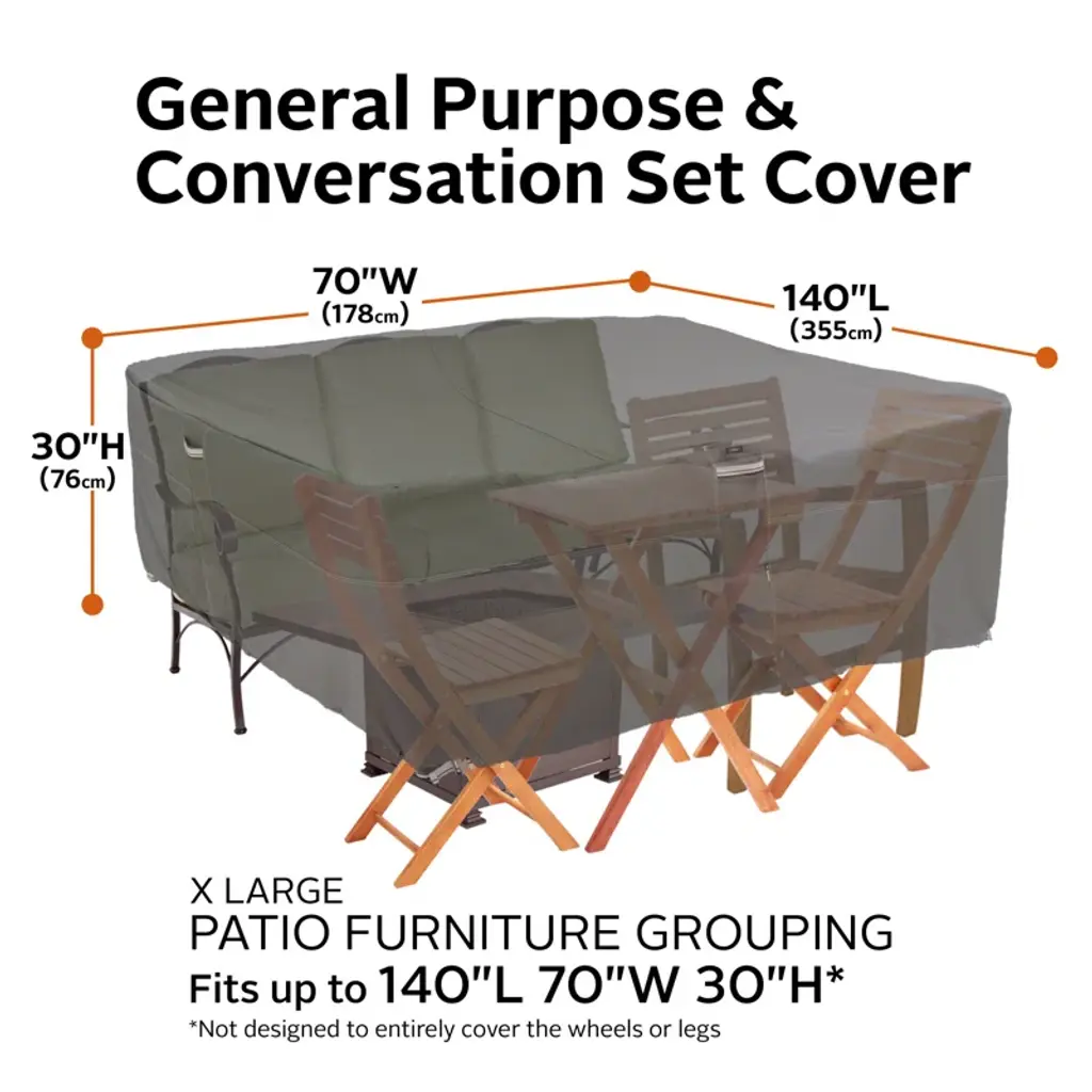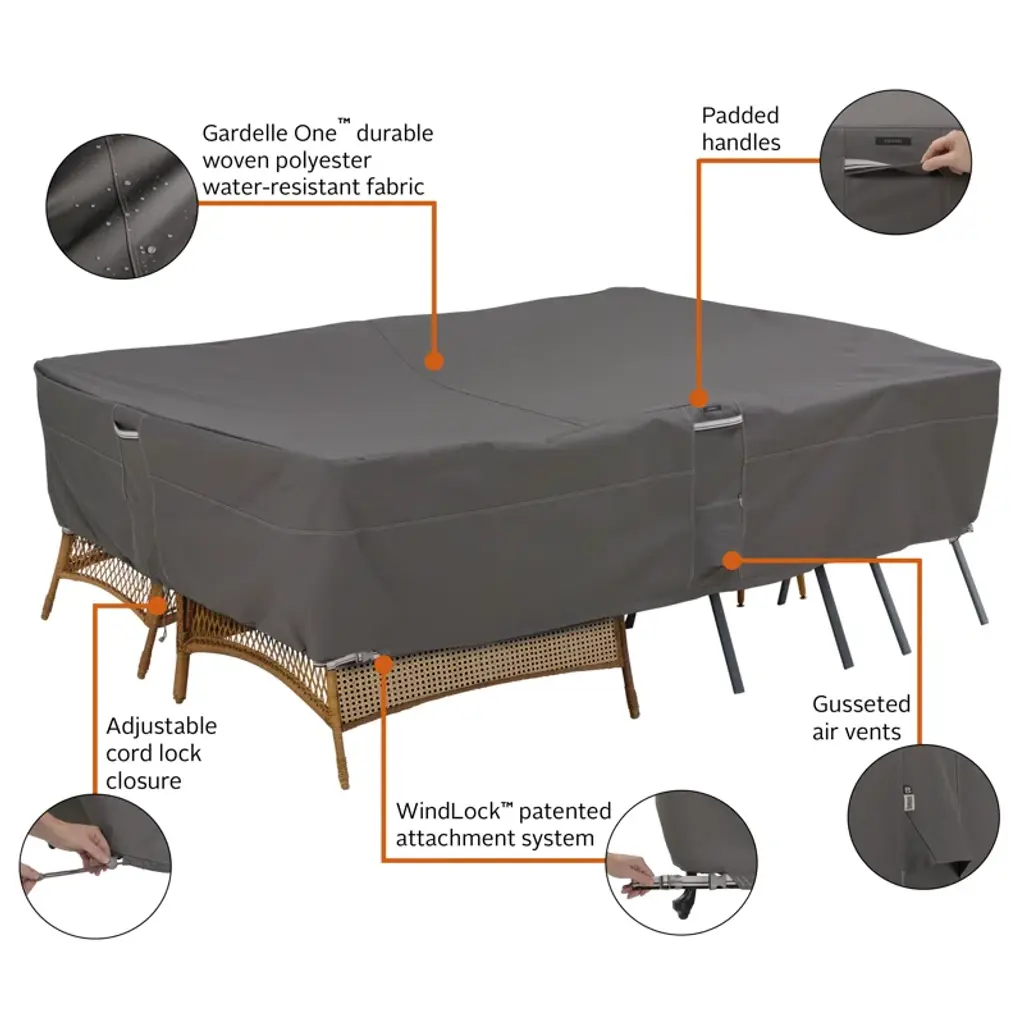 Keep your conversation set looking fresh and protected from the elements with this durable cover. Made from UV-resistant, water-resistant polyester, it features an elastic and tie closure for a secure fit. The vented design prevents moisture buildup, ensuring your set stays in top condition. Hand wash only for easy maintenance.