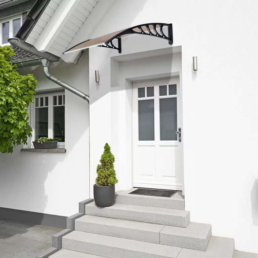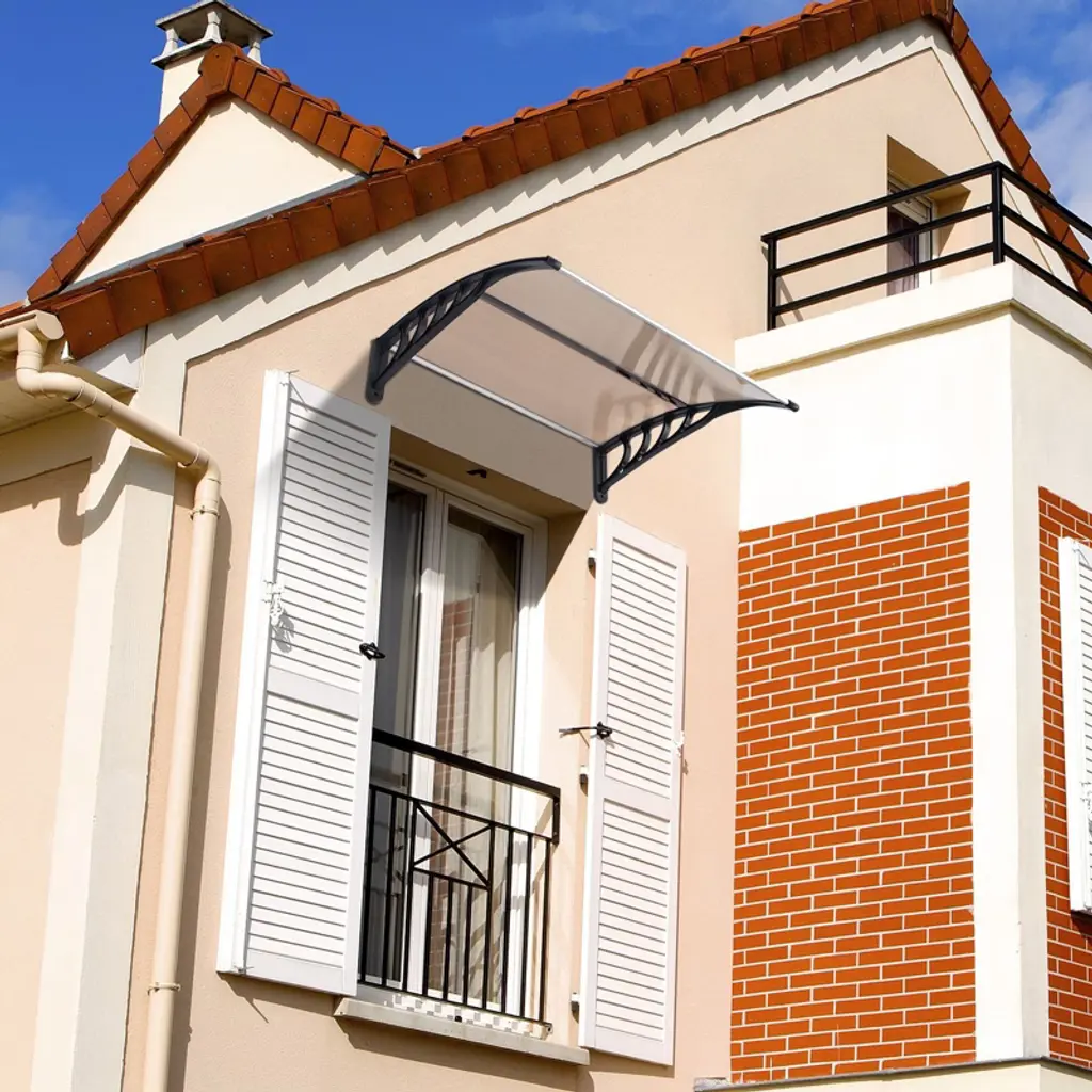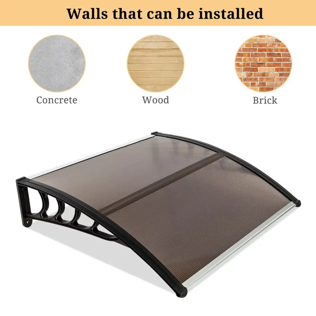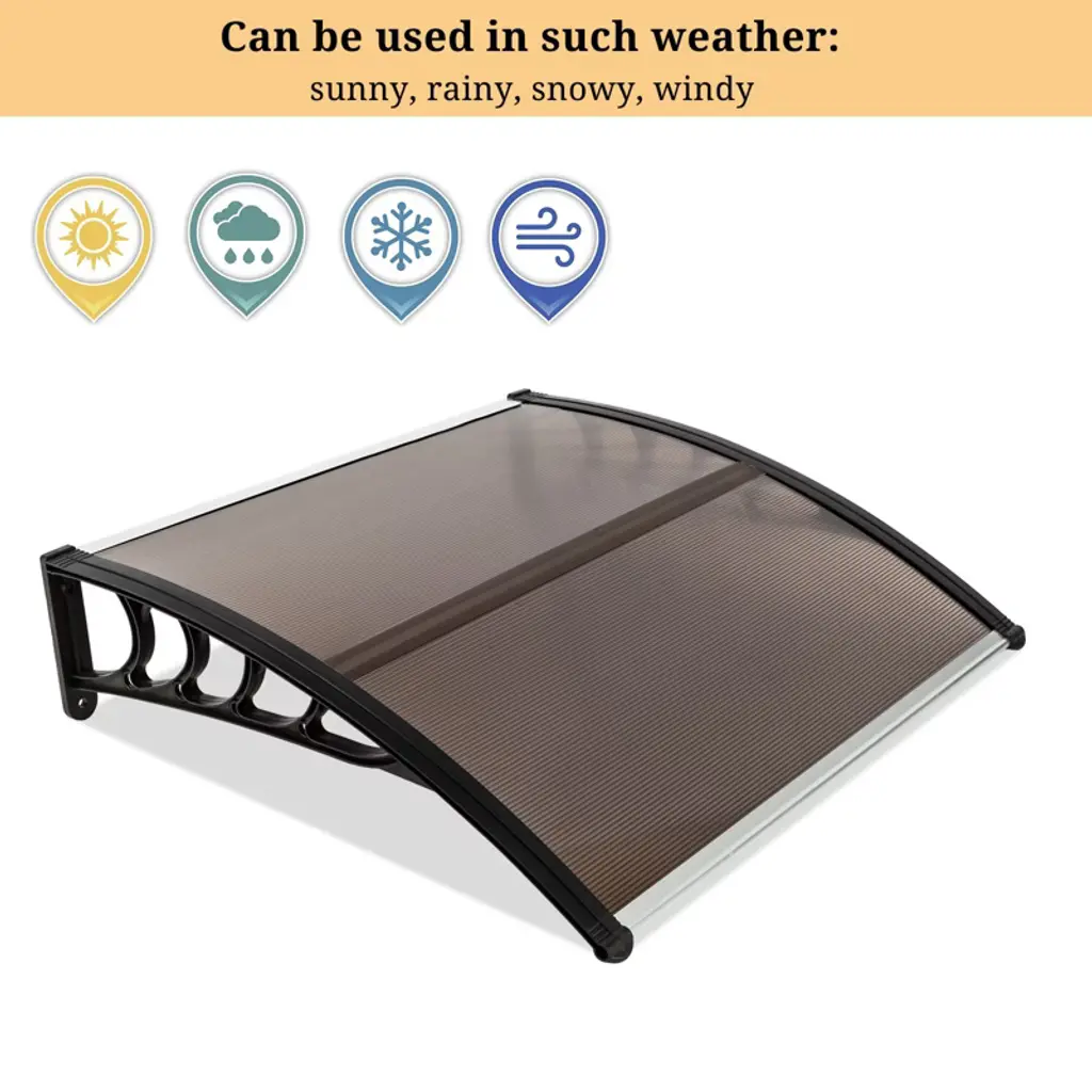 Build a mini shelter for resisting rain or scorching sun at the gate or window! You may feel it wonderful by using this window and door awning! This is a superb design integrating high-class abs, metal, and polycarbonate materials, durable and wear-resistant to use. The abs bracket could strongly sustain this canopy. It bulges to shape a small shield. Quite easy to install and remove! It also acts as a decoration for your house! Don't miss such a good chance!