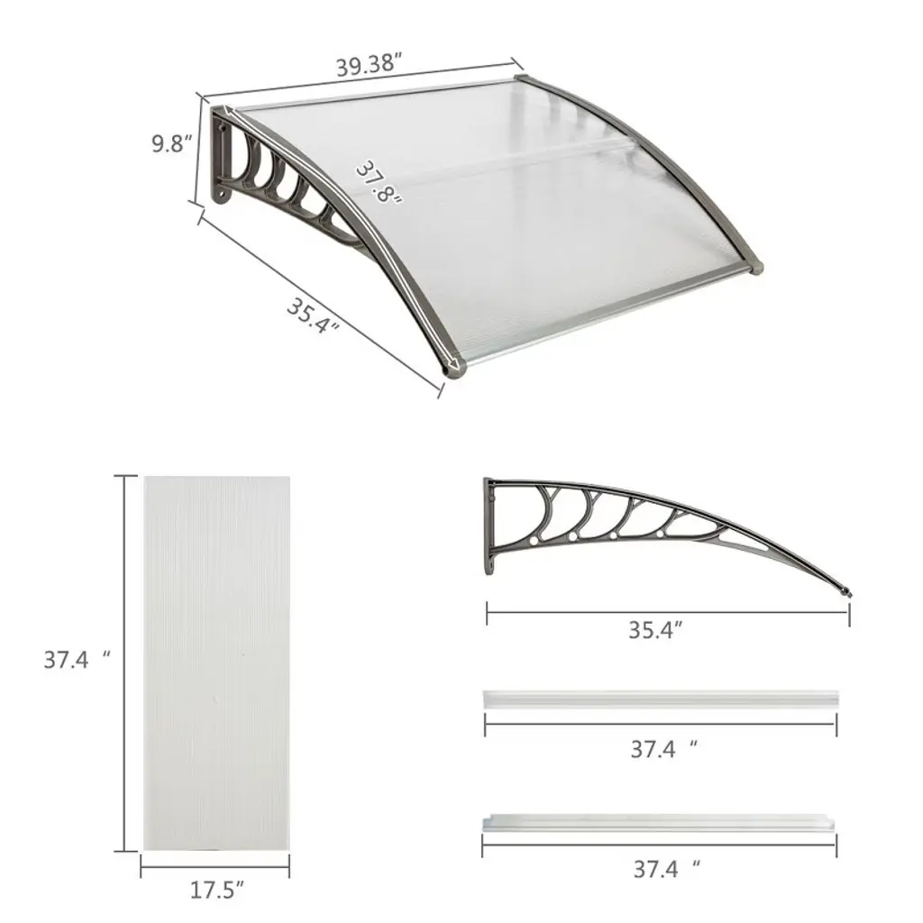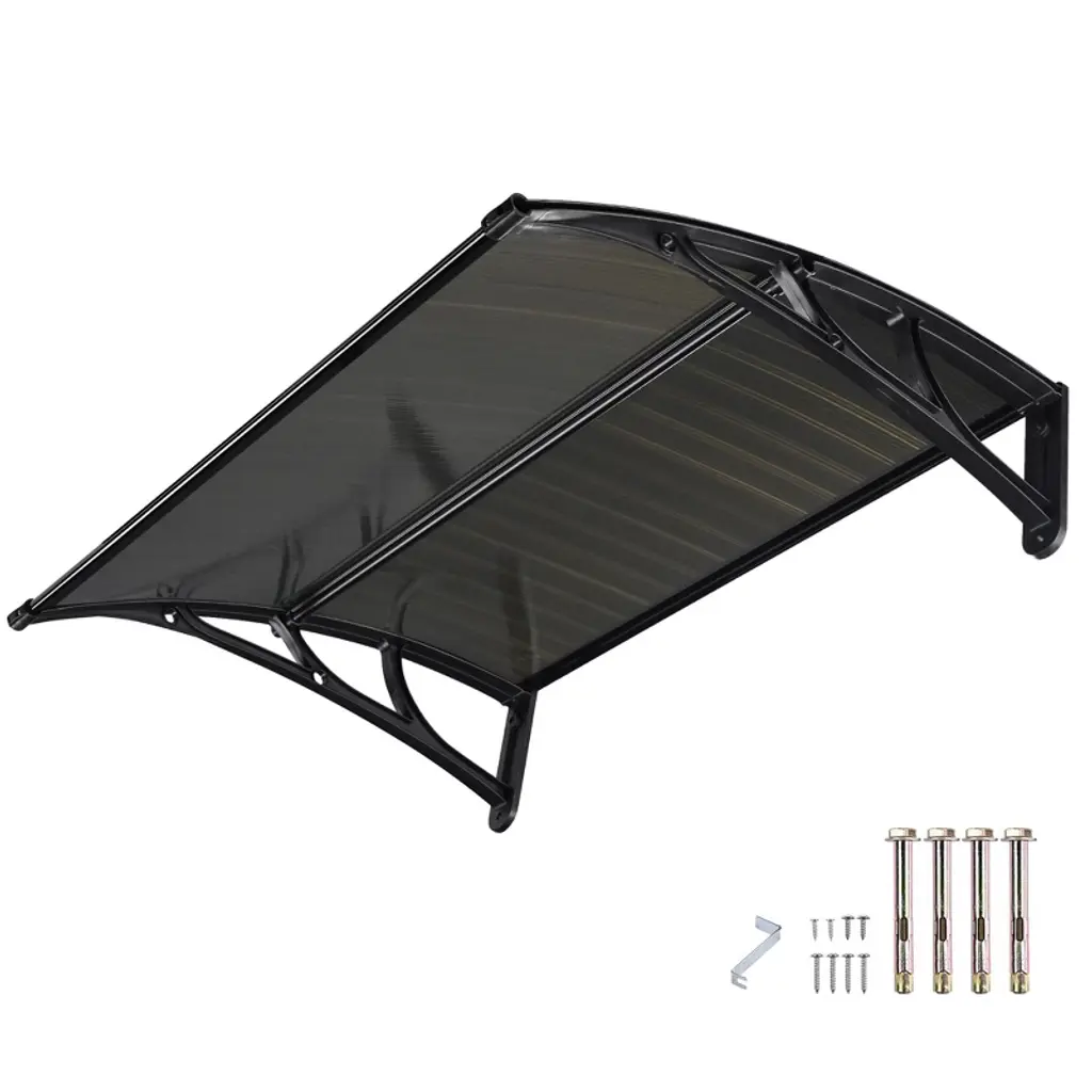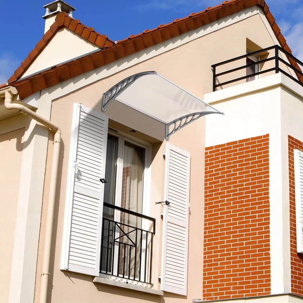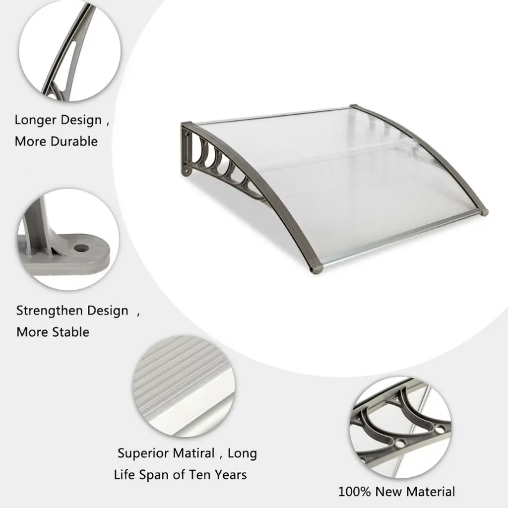 Build a mini shelter for resisting rain or scorching sun at the gate or window! You may feel it wonderful by using this window and door awning! This is a superb design integrating high-class abs, metal, and polycarbonate materials, durable and wear-resistant to use. The abs bracket could strongly sustain this canopy. It bulges to shape a small shield. Quite easy to install and remove! It also acts as a decoration for your house! Don't miss such a good chance!