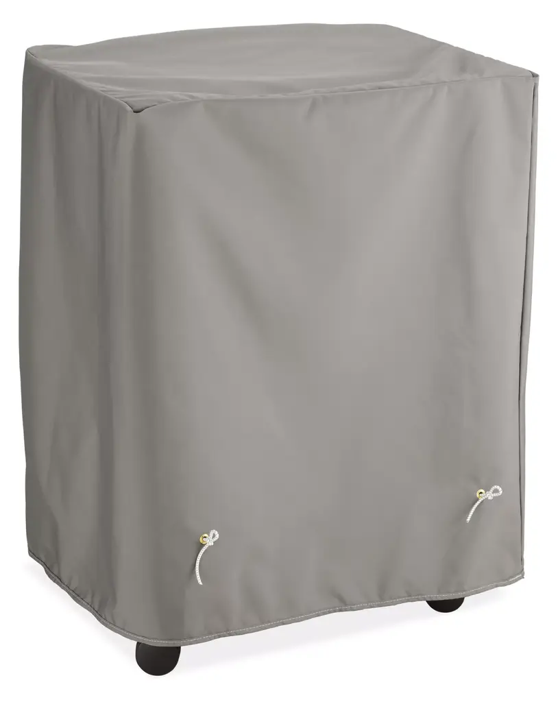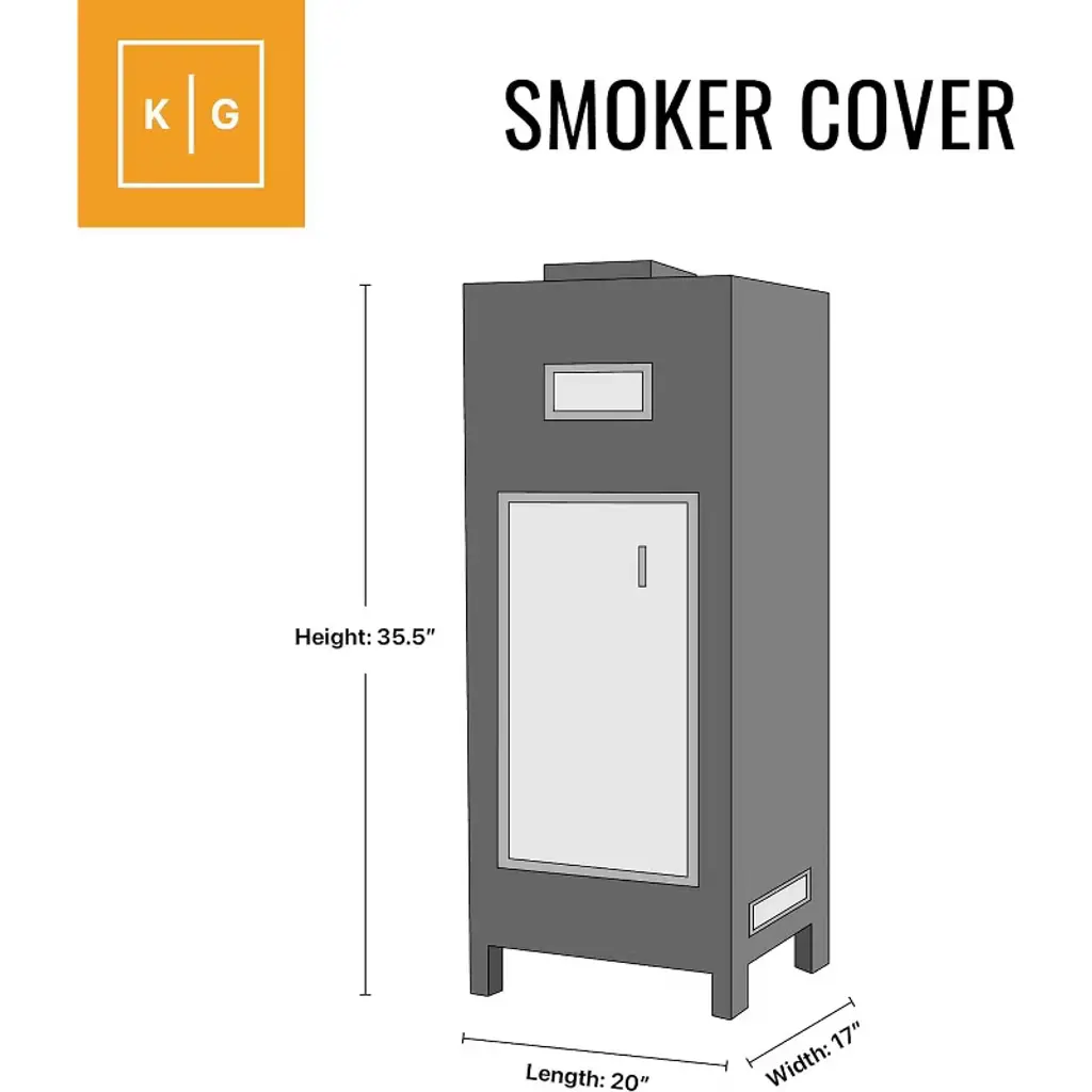 KHOMO GEAR Smoker Cover. This heavy-duty cover keeps the grill clean, dry, and looking like new by reducing its exposure to outdoor elements like wind, rain, snow, dust, and dirt. Its protective fabric system features an elegant fabric top specially treated to prevent cracking in cold weather, a water-repellent and water-resistant PVC under-coating, and a splash-guard skirt for all-over protection from top to bottom. Equipped with padded handles for easy fitting and removal, the unit's click-close straps snap over the barbecue legs to keep the cover securely in place, even on windy days, while its adjustable elastic hem cord with a toggle ensures a tight.