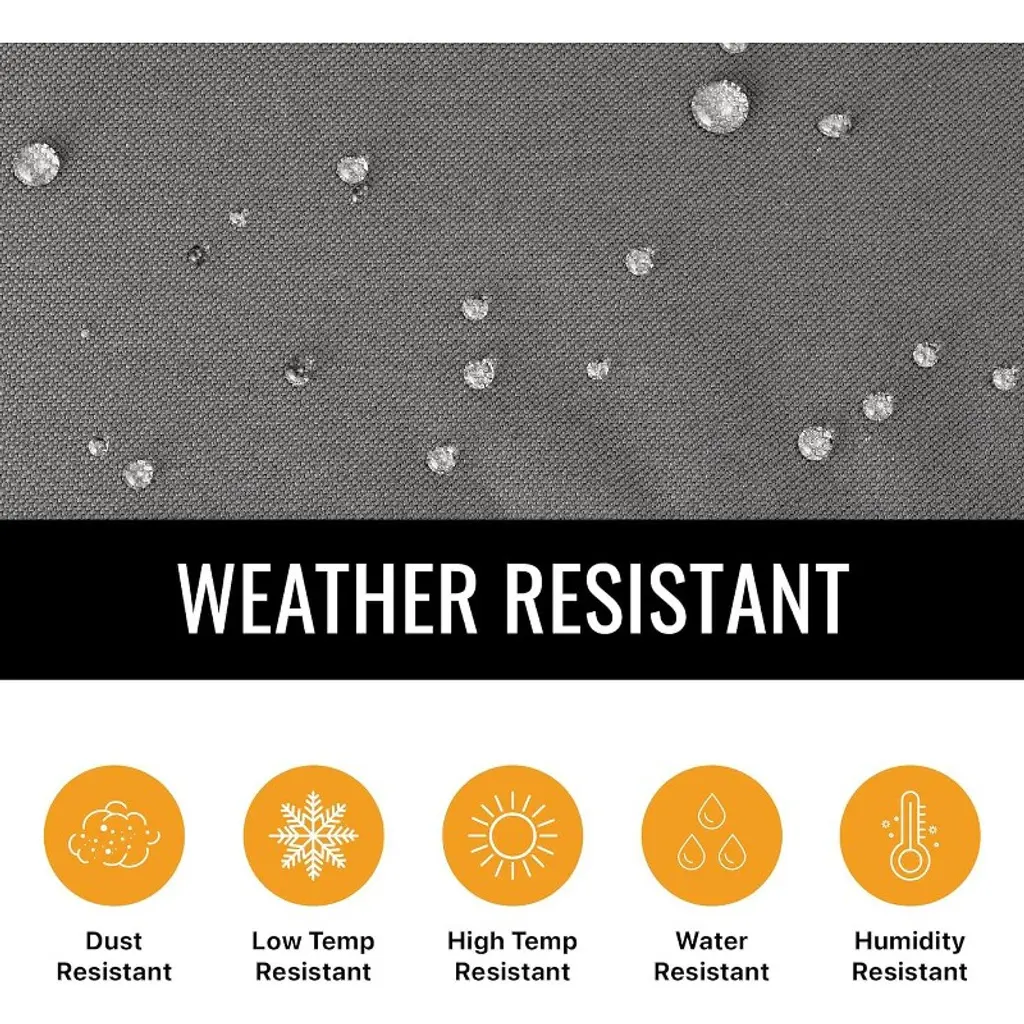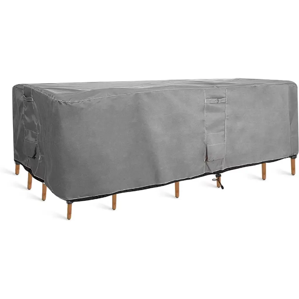 Protect Your Entire Outdoor Dining Set with KHOMO GEAR’s Reliable Coverage Ensure your outdoor space stays clean, dry, and ready to enjoy with the KHOMO GEAR Patio Table & Chair Set Cover. Designed to fit most rectangular and oval patio dining sets, this cover offers full-coverage protection for both the table and surrounding chairs, keeping them safe from the elements year-round. Crafted from durable, water-resistant polyester fabric, it features a reinforced backing that stands up to rain, snow, UV rays, dust, and debris. Built-in air vents promote airflow to minimize condensation and prevent mold or mildew buildup. Adjustable buckle straps and a drawstring hem ensure a snug, windproof fit that won’t blow away during storms. This all-weather cover helps maintain the quality of your furniture while giving your outdoor space a neat and well-kept appearance.
