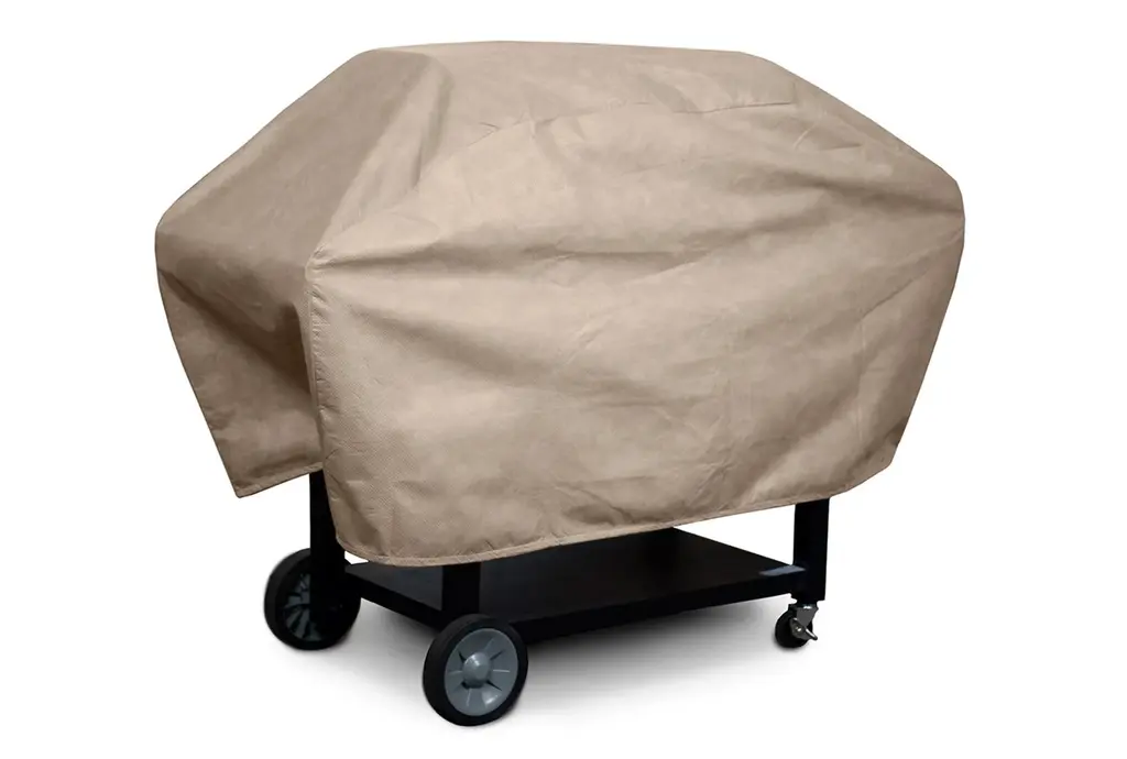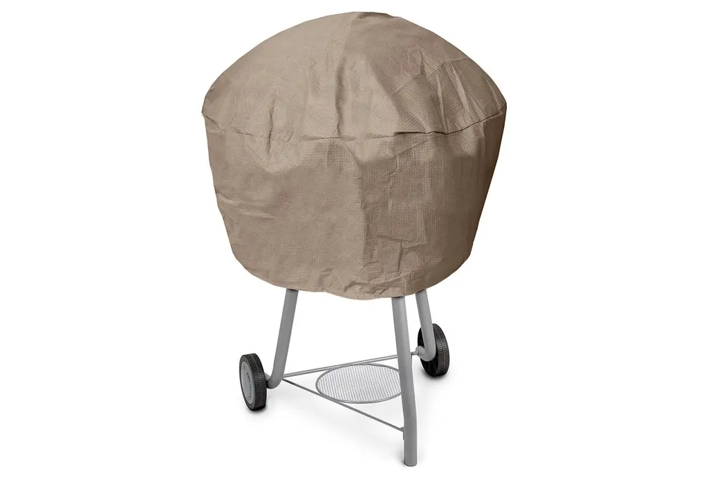 The KoverRoos®III Grill Cover is designed to protect your outdoor grill from various elements. Its taupe color blends seamlessly with any outdoor setting, offering a neutral yet stylish look. The cover is made from synthetic material with polypropylene fabric and shock cord, ensuring durability and resilience.