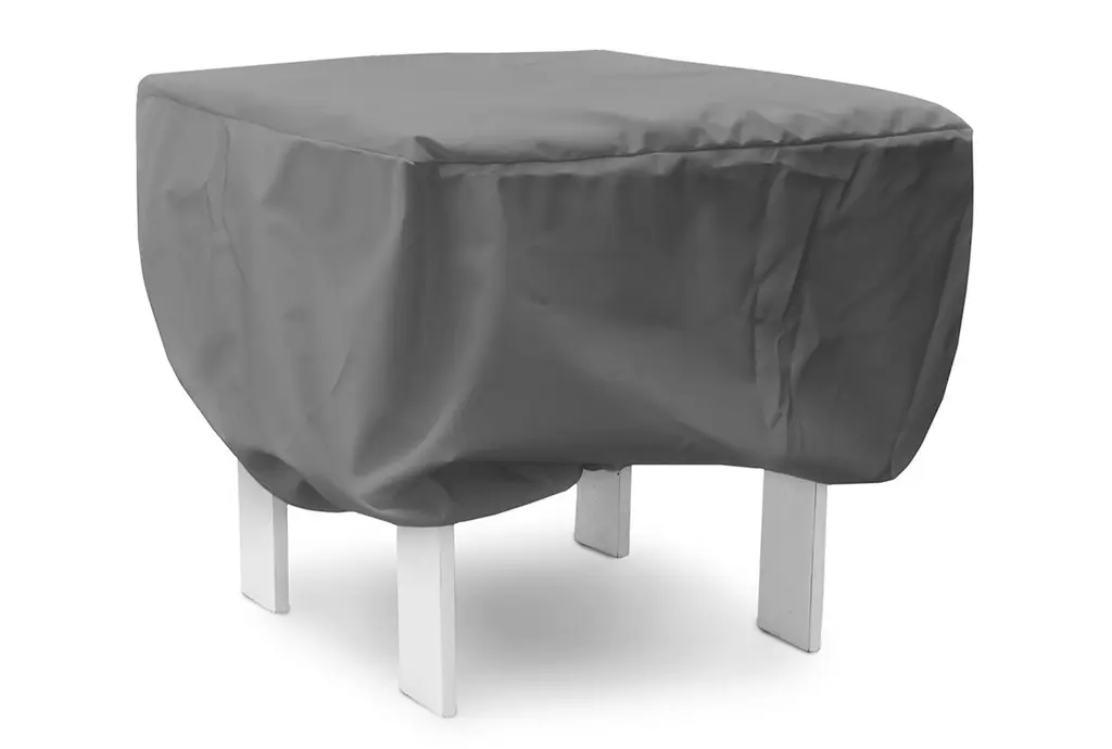 Protect your outdoor furniture with the KoverRoos®MAX Round Small Table Cover, designed to fit tables with a 22" diameter and 15" height. This light grey cover is crafted from durable polyester fabric and features a shock cord to ensure a secure fit. Ideal for use on patios, decks, and gardens, it provides reliable protection against various weather conditions.
