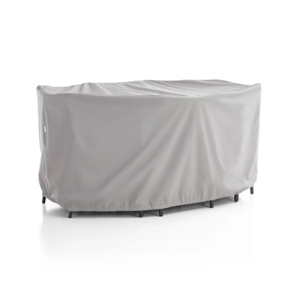 Keep your square outdoor dining table and chairs in their best shape with this cover uniquely woven to resist abrasion and fading. The breathable, water-resistant fabric protects a table and chairs from precipitation while allowing condensation to evaporate. Saturation-dyed a sophisticated shade of grey, the Saturamax fabric boasts UV protection to retain its hue for five years. Safety stitches and binding along the edges ensure durability. Lightweight and easy to put on and take off thanks to its drawstring closure, the KoverRoos®MAX square outdoor dining table and seating cover stores neatly in the included pouch.