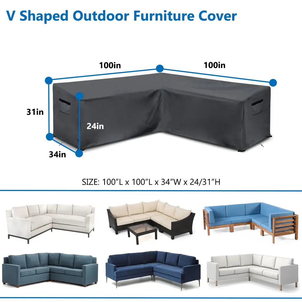 L-Shaped Sectional Sofa Cover Waterproof Outdoor Sectional Cover - 100"x99.9"(v-Shaped) - Grey