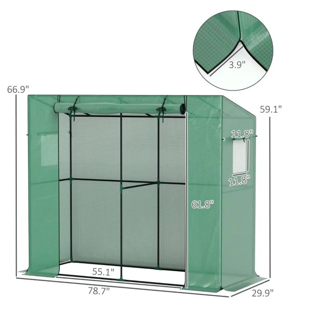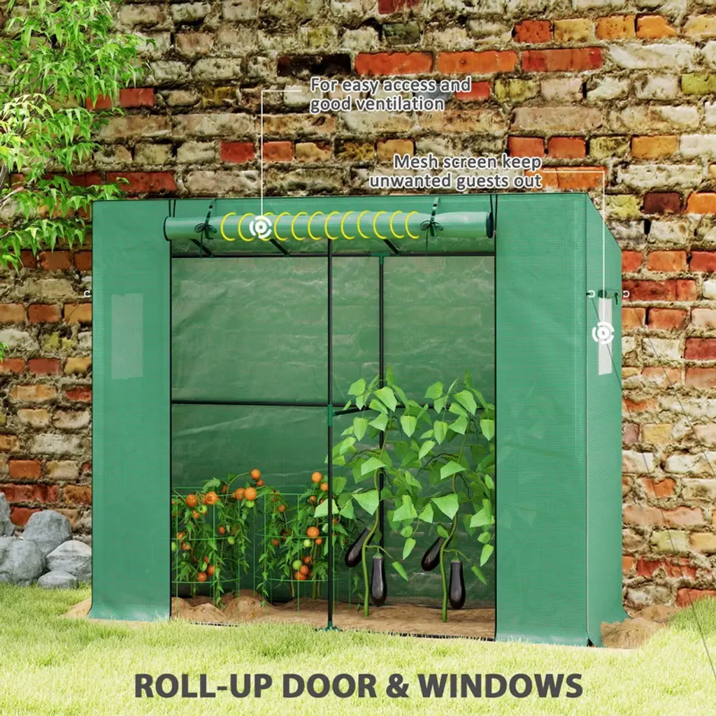 Lean-to Walk-in Greenhouse For Outdoor Use, 6.6 X 2.5 X 5.6 Ft – Uv-resistant Pe Cover, Roll-up Door, Mesh Windows