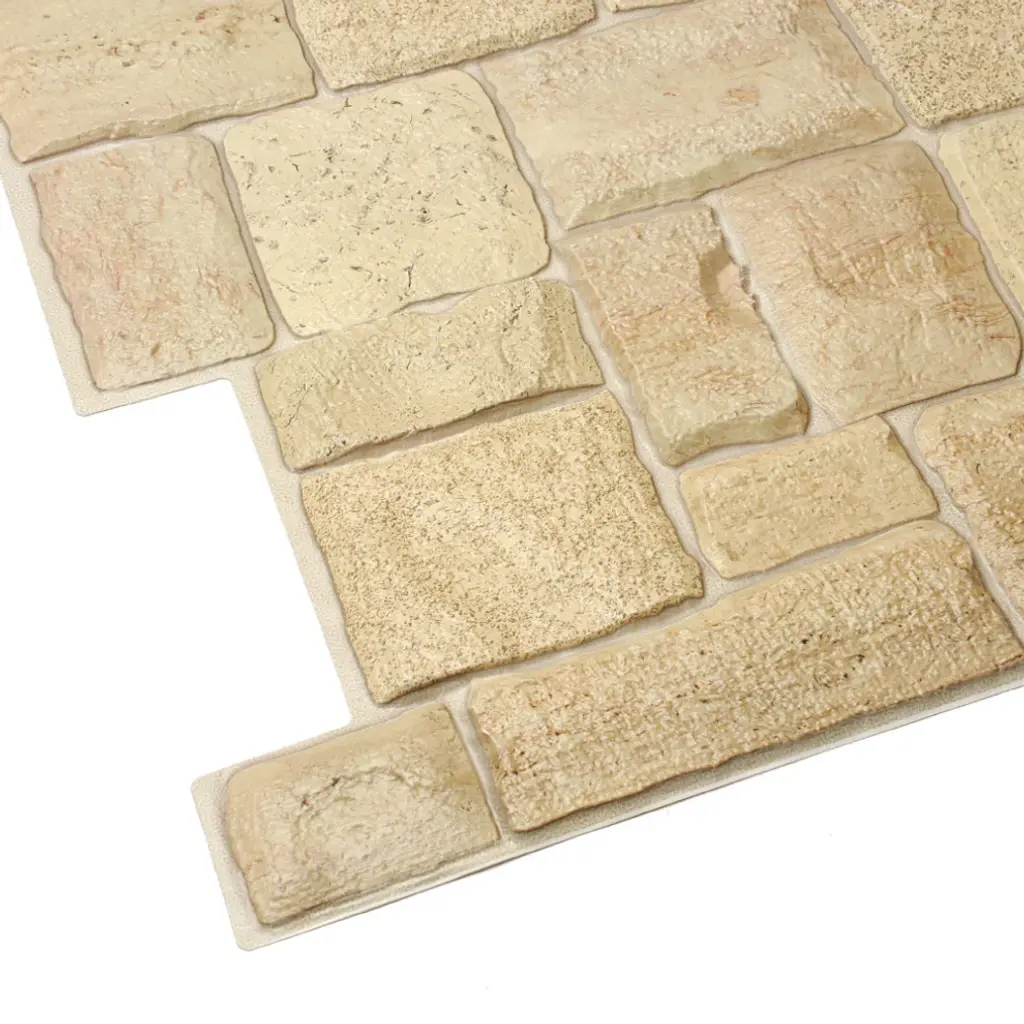Light Beige Limestone 3D Wall Panels, Set Of 5, Covers 28.1 Sq Ft