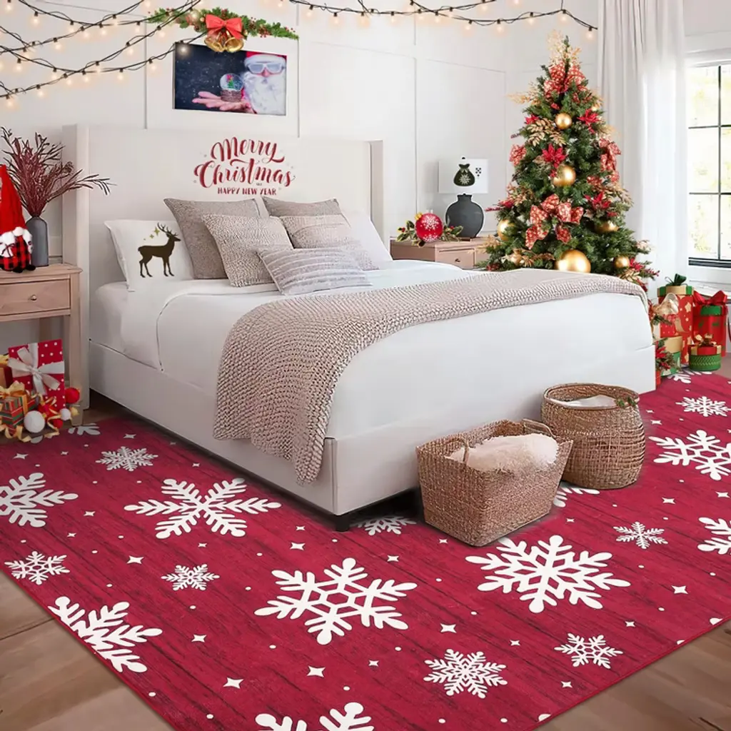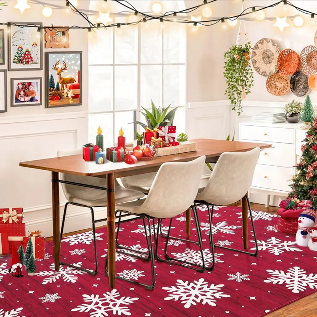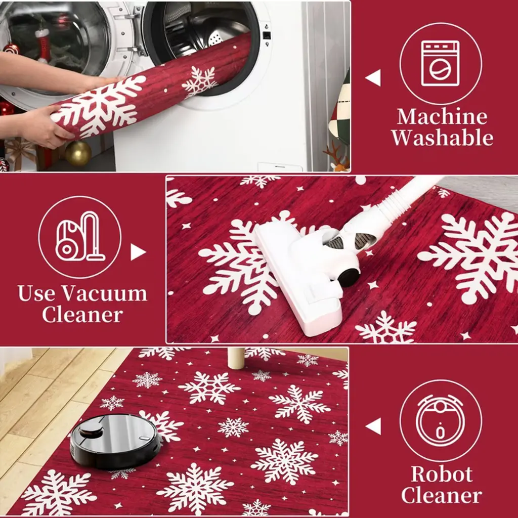 Looking to add a festive touch that’s as practical as it is cozy? Imagine a washable Christmas rug that brightens your home with cheerful snowflakes, feels soft underfoot, and cleans with ease—making your holiday decorating effortless and stress-free. Highlights at a Glance: - Classic Christmas colors paired with delicate snowflake prints infuse your space with warm festive charm, perfect for amplifying holiday cheer. - Non-slip TPR backing grips firmly to floors, keeping the rug securely in place and preventing slips, ideal for busy holiday gatherings. - Soft, warm texture delivers comfortable support under bare feet, adding a cozy layer to cold winter days without sacrificing style. - Thin, low-pile design glides easily under doors and fits smoothly beneath furniture, avoiding awkward snags or blocked entryways. - Washable and vacuum-friendly for hassle-free upkeep: vacuum daily for dust, or toss in the washer for deeper cleans, no stubborn stains left behind. - Tightly woven construction resists shedding and fading, ensuring the rug stays vibrant and tidy even with frequent holiday use. - Foldable design simplifies rearranging between rooms or storing away after the season, saving space when not in use. Friendly Note: Upon receiving the washable area rug, please unfold it promptly. Initial creases may appear due to folding during shipping, but rest assured—they will naturally smooth out within a few days. Additionally, due to variations in lighting conditions, the rug’s shade may differ slightly from what’s seen in photos. Thank you for your understanding and support! Care Instructions: Can be hand washed or machine washed in cold water to protect its texture and color. For minor spills, spot cleaning is recommended for quick, easy maintenance. Supports both regular vacuums and robot vacuums for daily dust removal. Use mild detergent only—avoid harsh chemicals to preserve the rug’s softness and vibrancy. Packing List: 1 x Area Rug
