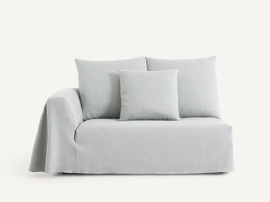 This product fulfils 8/10 Responsibility Criteria. Read more This listing is for the Offset Loose Cover only. You can find our Offset Sofa w. Loose Cover here. Offset is the result of research into ‘balance’ by Norm Architects. The studio wanted to create a sofa as simply as possible while embracing a set of paradoxes: making it substantial yet delicate in appearance, architectural yet inviting and homey. The Offset Loose Cover introduces increased longevity, functionality and versatility to the collection, with a removable and washable exterior crafted from a custom-made cotton and linen blend textile in three timeless colors. The soft, natural and easy to clean cover creates a relaxed silhouette for the Offset, imbuing spaces with a sense of casual elegance. The internal body of the sofa has an inherently longer life than its cover, which can become worn with time and daily use. By creating a removable cover for the Offset, it is possible to retain the body whilst simply replacing the cover—extending the product’s lifespan and reducing the instance of waste. In this way, the Offset Loose Cover can also adapt to evolving lifestyles, design and color preferences to be cherished for generations. The frame of the Offset sofa is constructed from FSC-certified wood and the back and side cushions are made from a double foam core encased in a feather down and foam blend for superior comfort and durability. The loose cover is secured to the sofa and armrests in one streamlined piece, with a concealed Velcro strip allowing for convenient removal.
