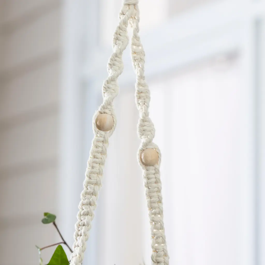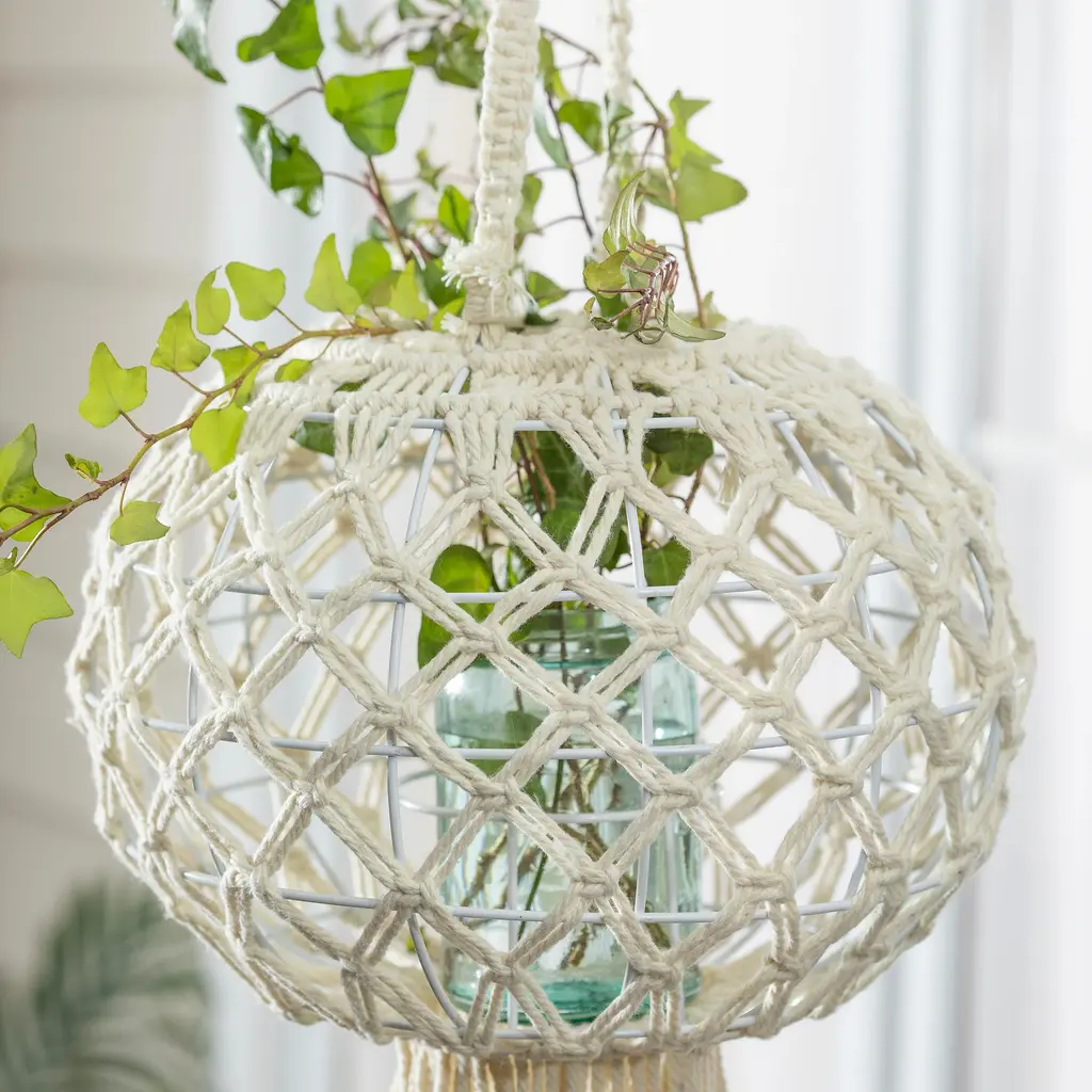 Add texture and style to any space with this plant cover. Featuring a stunning macrame design with intricate patterns and elegant tassels, this cover brings a natural, organic look to the home. A ring makes it easy to hang in the kitchen, living room, bedroom, and more. Its neutral color palette complements every aesthetic and adds interest to the room. It makes a great gift for anyone who has a green thumb.