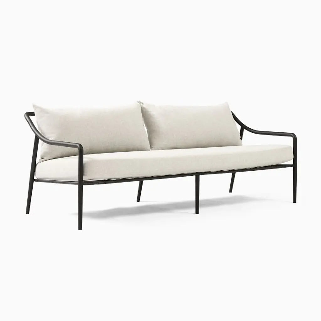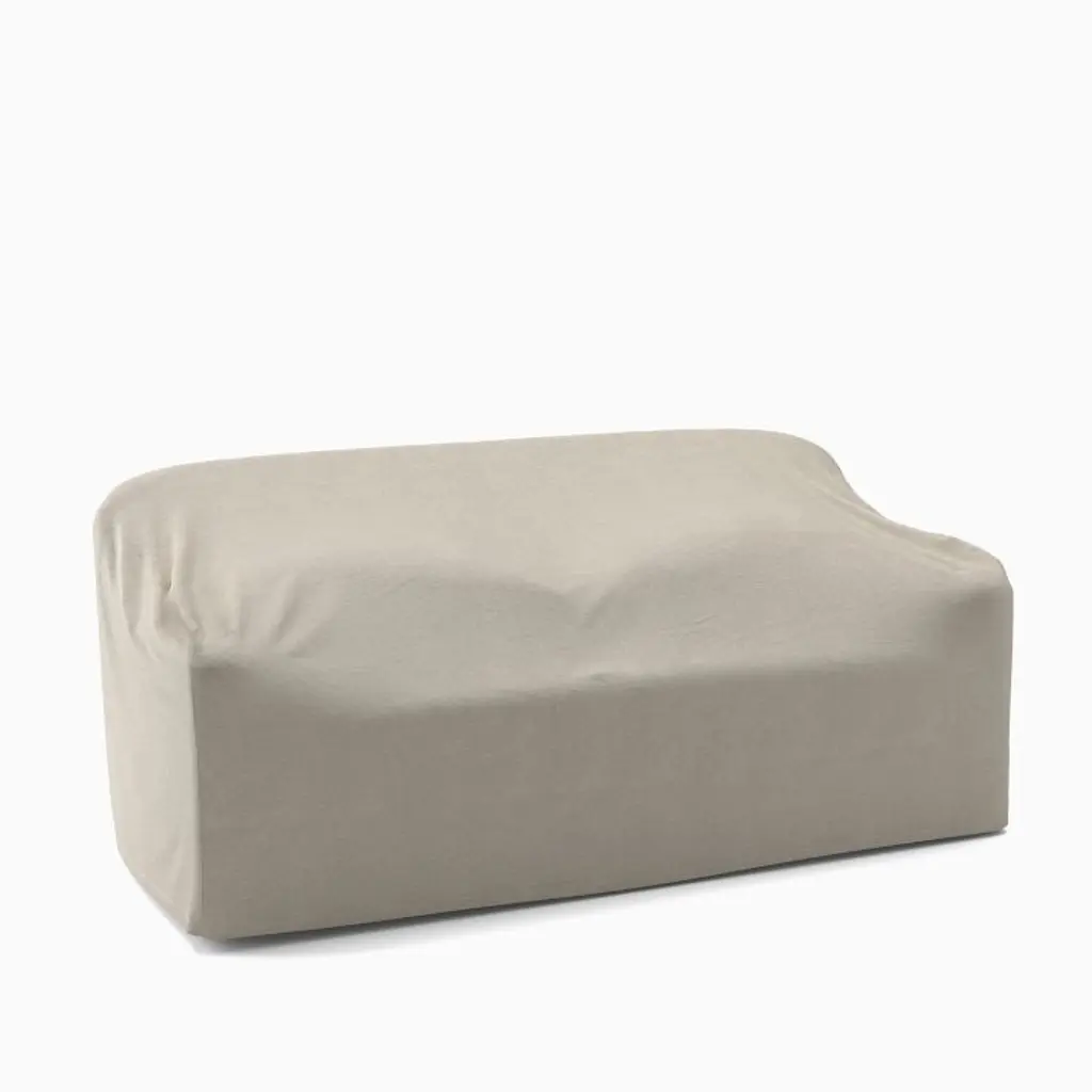 76.5"w x 35"d x 28.75"h. 100% polyester. PVC backing. Water-repellent and fade- and mildew-resistant. Hook at the bottom keeps the cover securely in place. Covers sit slightly above the ground to allow for air flow to ensure that moisture is not trapped under the covers. Phthalate-free. Accommodates West Elm's Madrid Outdoor Sofa (sold separately). Made in Mexico.