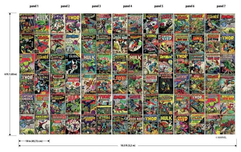 Experience the design & innovation that has carried York Wallcoverings through over a century of superior service & style. Printed on a vinyl surface with non-woven substrate backing, this highly durable commercial wallcovering smooths effortlessly, is easy to remove, and meets Type II requirements of CCC-W-408A. This colorful, large-scale mural is sure to add high impact to your kids space. Includes 1 mural - 7 panels = 10.5 ft x 6 ft with a straight match.