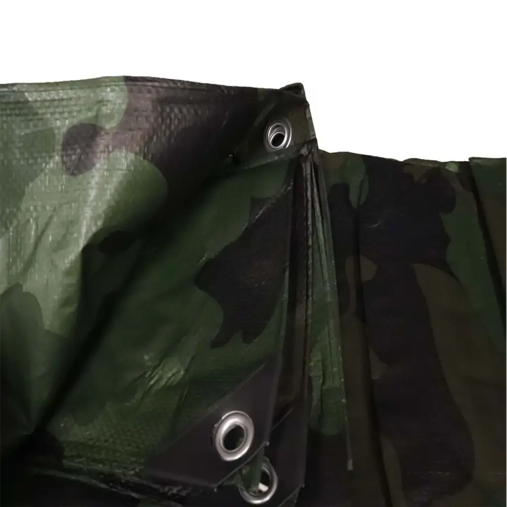 Our Multi-Purpose Camo Poly Tarps are ultra-versatile for just about any job you throw at them. Whether it's protecting your possessions from the elements, creating a temporary camping tents or shelter, for use as a ground or flooring cover on concrete, a surface protector when painting, military camp canopy or tent tarp solutions, agriculture needs, landscaping, and roofing covers, or as a car/truck/boat/motorcycle cover. There isn't any task that these tarps are not equipped to handle. These poly tarps are constructed with a strong 10x10 fabric weave and 5 mil thickness and come with rust-resistant metal grommets approximately every 3 feet for tying down and securing the tarp and plastic bar reinforced corners for added strength and durability. With 3 layers of heavy-duty woven and laminated polyethylene, heat-sealed seams, and rope reinforced hems, these aren't the type of tarp covers that are going to fall apart quickly, but tarps that you are going to be used for years to come. These Camo Poly tarps are made for all-weather usage because they are waterproof, as well as laminated to resist tears. They also feature arctic flexibility, meaning that they are going to stand up to even the coldest of conditions. Disclaimer: All of the tarp sizes are "Cut Sizes" - the industry standard. The "Finished Size" is usually 6" shorter on each side. For example, a 8' x 10' tarp has a Finished Size of 7' 6" x 9' 6". Features: - Waterproof - 10x10 Cross weave - ultra-violet Treated on both sides - Heavy-Duty Rust resistant grommet every 18 inches - Heat-sealed seams - Rope reinforced hems - Corner solid plastic bar reinforcement - Tear Resistant - Arctic flexibility