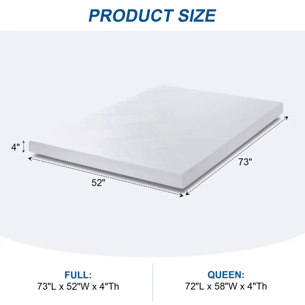 Muuegm 4" Sofa Bed Mattress Replacement, Gel Memory Foam Sleeper Sofa Mattress Topper With Washable Cover, Certipur-us Certified, Full