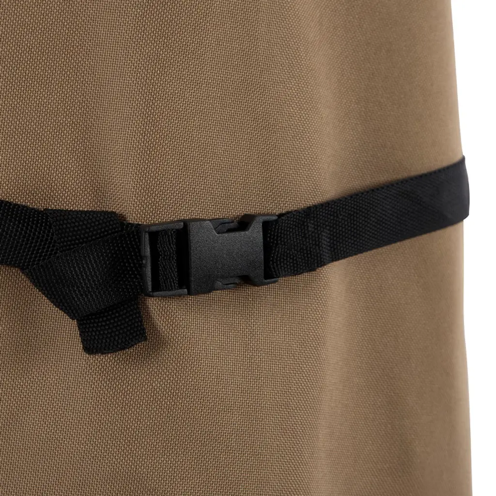 Extend the life of your market umbrella and keep it looking like new season after season with the Outdoor Umbrella Cover by Pure Garden. This durable cover is constructed from 600D polyester canvas with waterproof backing and offers 50+ UV protection from the sun, so your patio umbrella is protected, rain or shine. The heavy-duty plastic clips, metal zipper, and elastic hem cord allow for a tight, customized fit that accommodates umbrellas up to 11.5-feet round or 7.5-feet square.