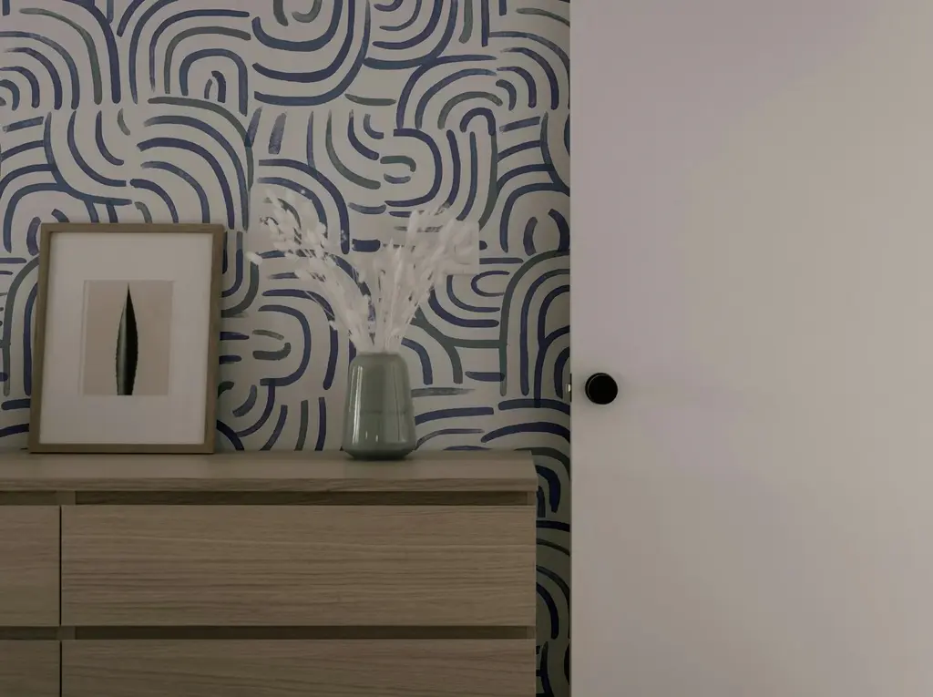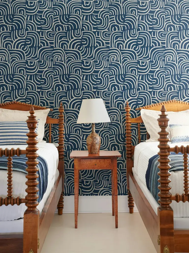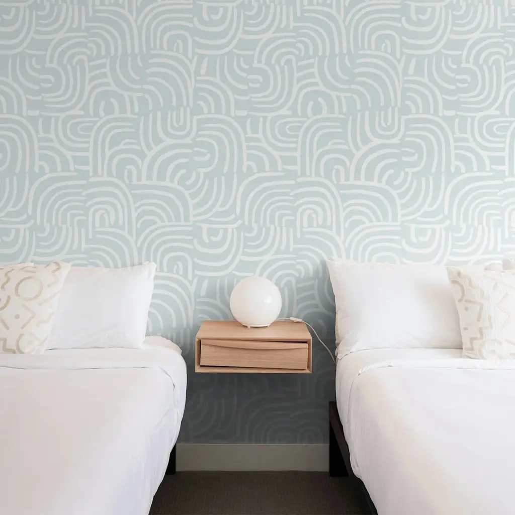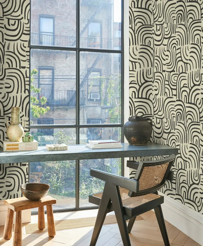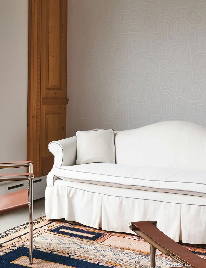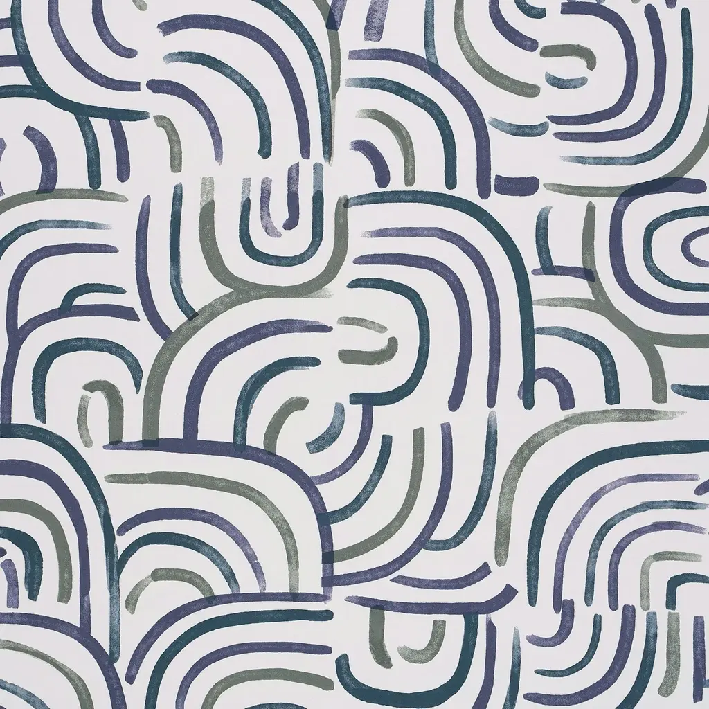 Lyrical arches create a surface of multidirectional line, color and rhythm. Mid-scale design with small elements that transform into a larger composition. Backdrop wallcoverings are made from hand-crafted artwork and printed on a non-woven ground with a subtle fibrous texture. Designed in Los Angeles and expertly printed in Brooklyn. Backdrop is proudly part of the heritage design house F. Schumacher & Co.