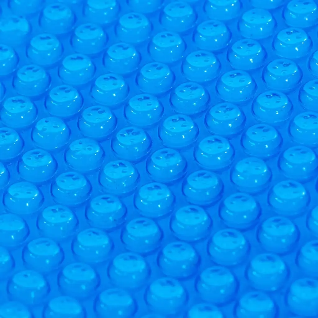 A solar pool cover is one of the most economical ways to keep your pool warm and extend the swimming season. Often referred to as a solar blanket, this cover is designed with thousands of tiny air bubbles, which trap heat from the sun and transmit that to the pool water. These solar covers often keep the water temperature 3-8 degrees warmer. They take the heat from the sun during the day and trap it in the water preventing the loss of heat on evenings and cloudy days. Solar covers allow you to swim in warm water even on chilly days and keeps your water levels high reducing evaporation. Get your solar blanket today for a warm swimming pool tomorrow! Product Features: Round blue swimming pool solar cover Increases and keeps water temperature 3-8 degrees warmer Reduces heat loss up to 75% Reduces evaporation, saving water and costly chemicals up to 97% Extends swimming season by up to 6 weeks Keeps your pool clean by blocking dirt and debris from water Can be used in both swimming pools and spas Bubble diameter: 12mm Bubble height: 3mm Dimensions: 8.1' diameter Material(s): plastic/vinyl Note: This listing is for the cover only, pool not included