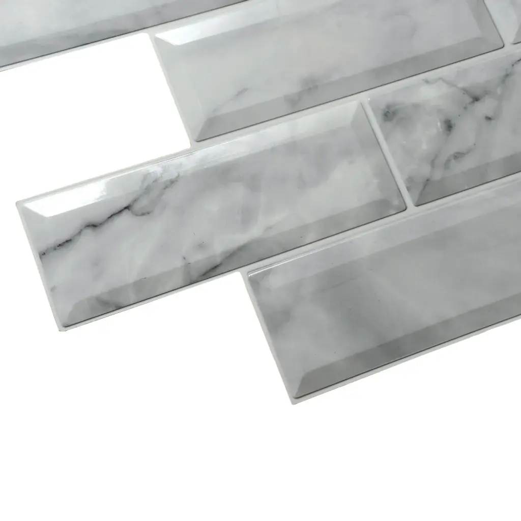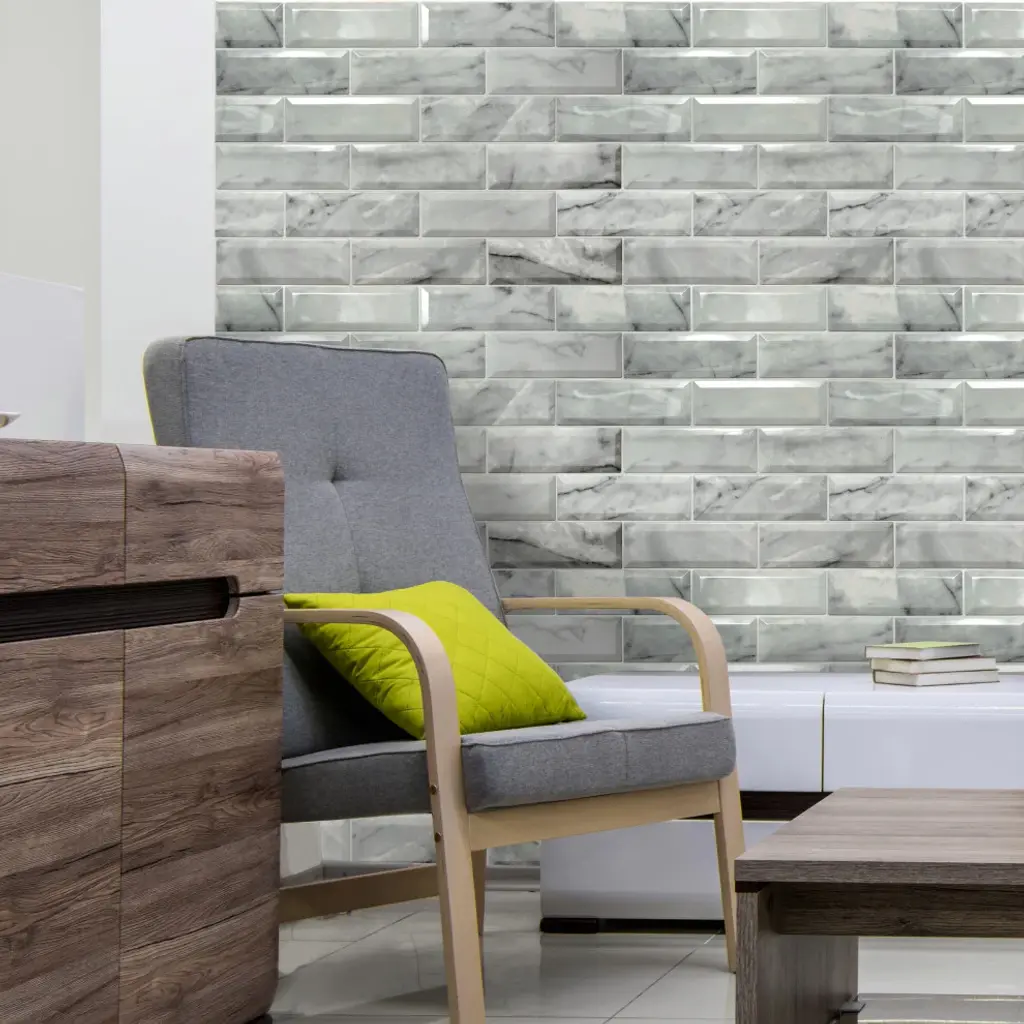 Off-White Marble Bricks 3D Wall Panels, Set Of 5, Covers 32 Sq Ft